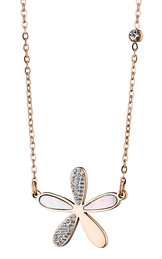 Κολιέ ατσάλινο μαργαρίτα με φίλντισι και πέτρες ζιργκόν