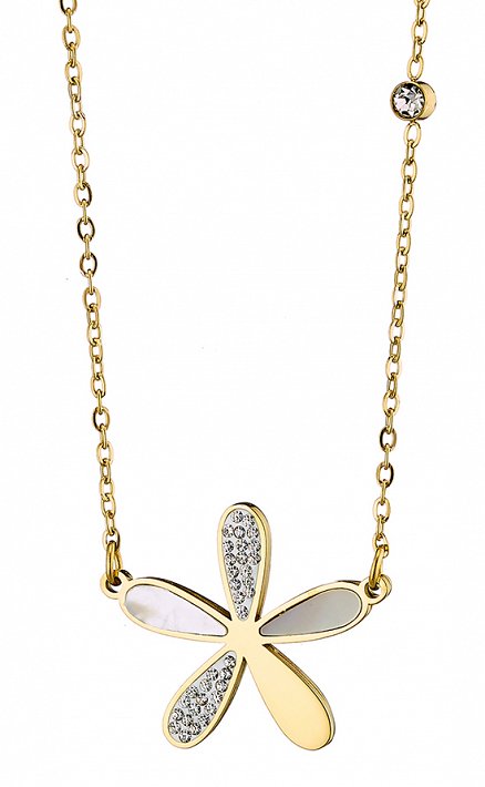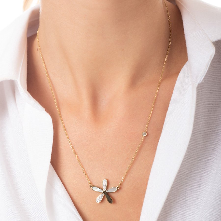 Κολιέ ατσάλινο μαργαρίτα με φίλντισι και πέτρες ζιργκόν