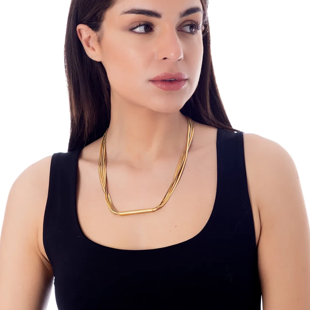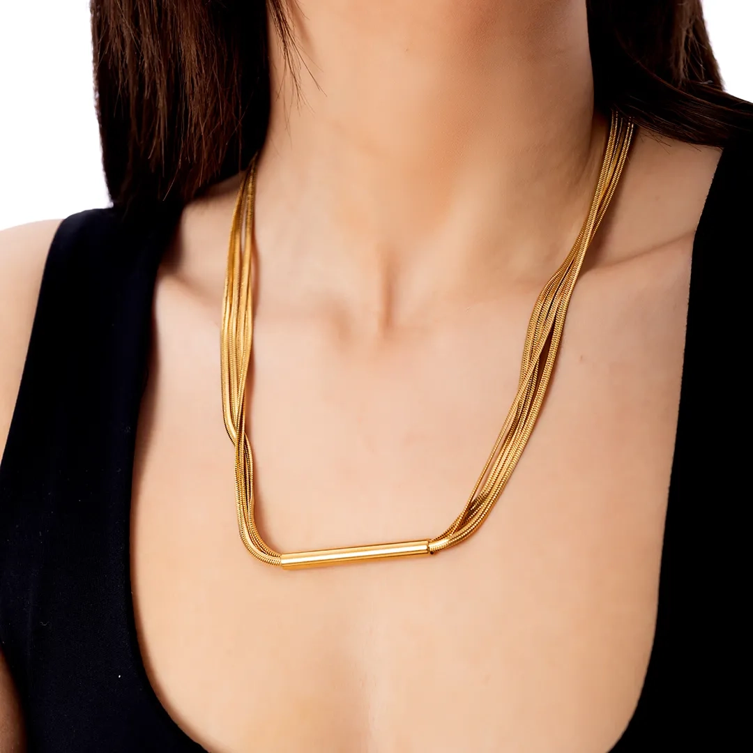 Κολιέ ατσάλινο με 5 αλυσίδες και κυλινδρικό μακρύ στοιχείο