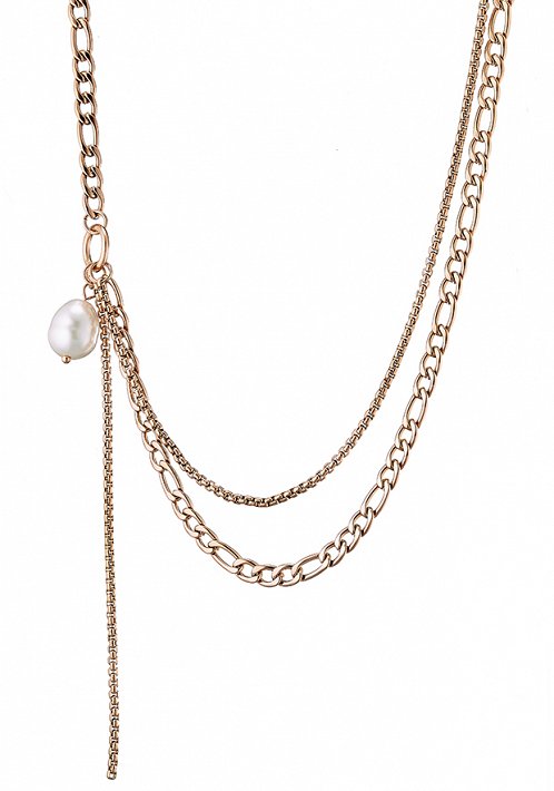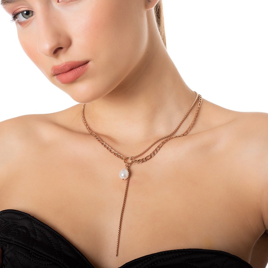 Κολιέ ατσάλινο με διπλή αλυσίδα και πέρλα