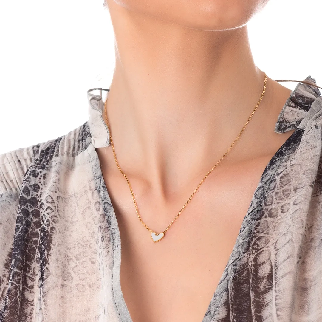 Κολιέ ατσάλινο με καρδιά από φίλντισι