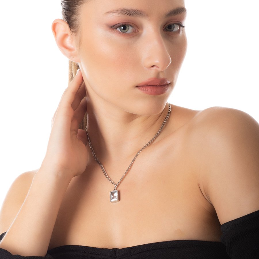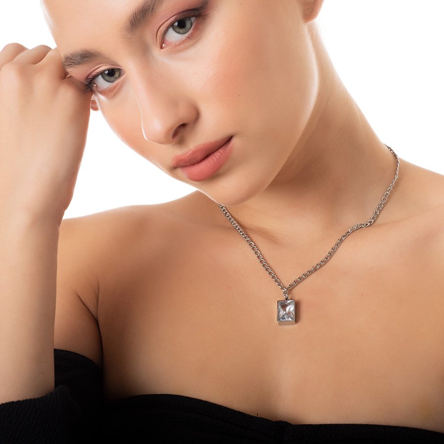 Κολιέ ατσάλινο μαμά με πέτρα ζιργκόν