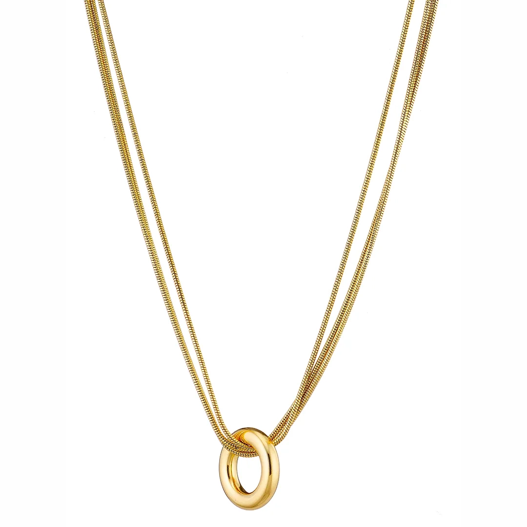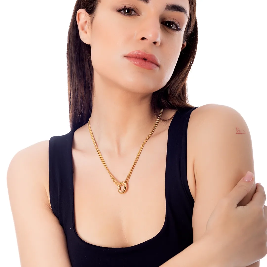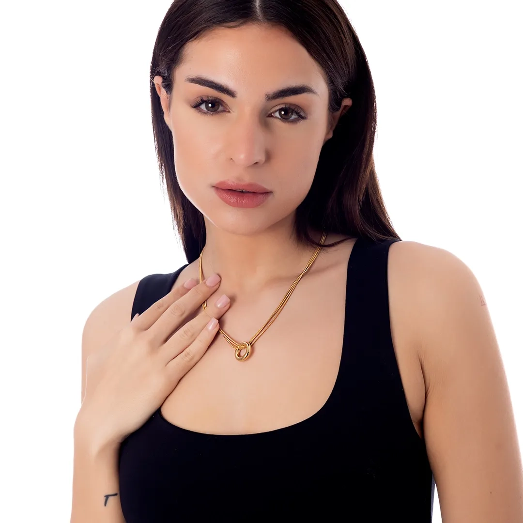 Κολιέ ατσάλινο με κύκλο και τριπλή αλυσίδα