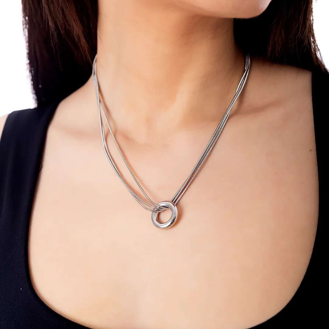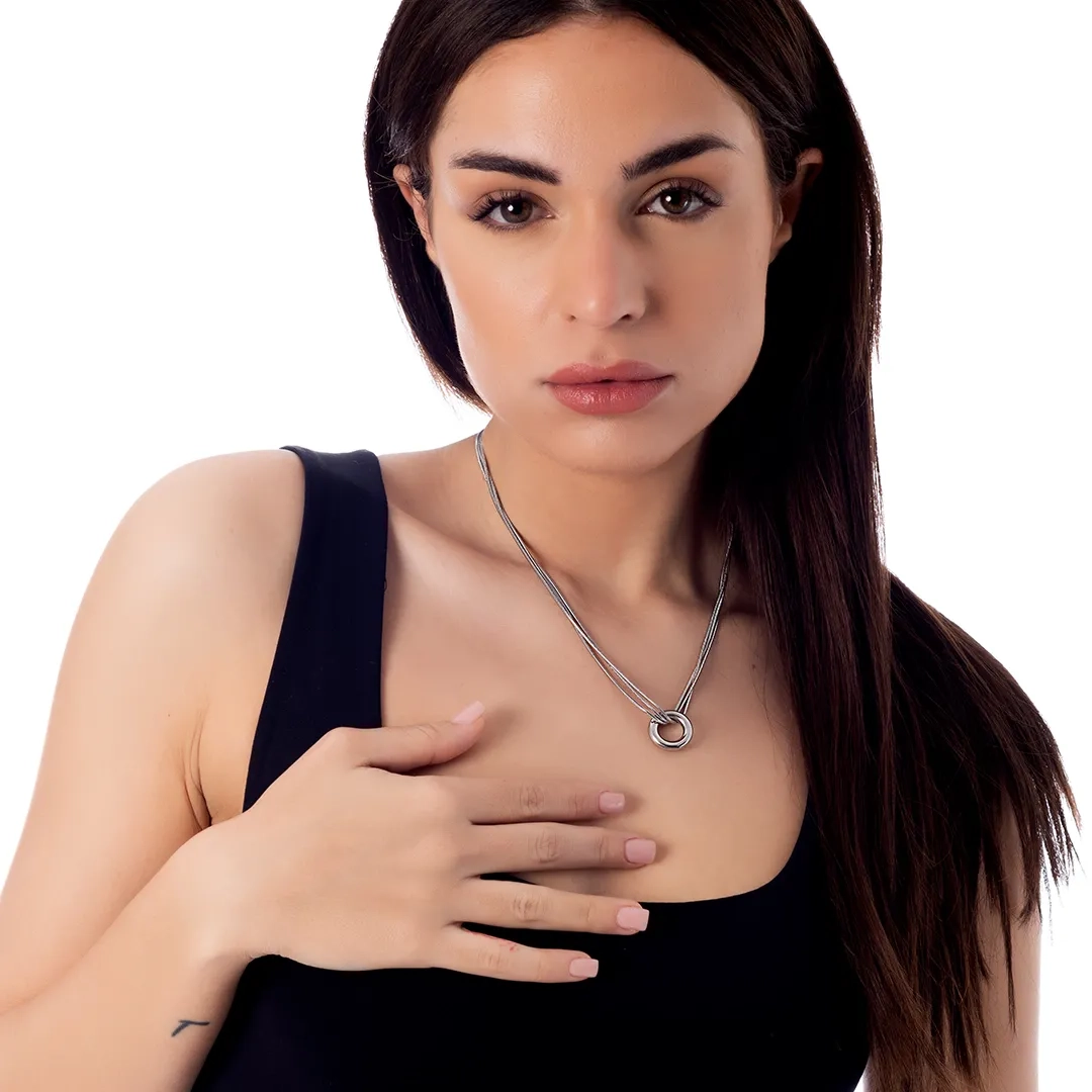Κολιέ ατσάλινο με κύκλο και τριπλή αλυσίδα