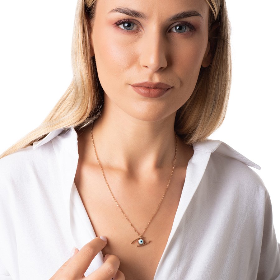 Κολιέ ατσάλινο με ματάκι φίλντισι