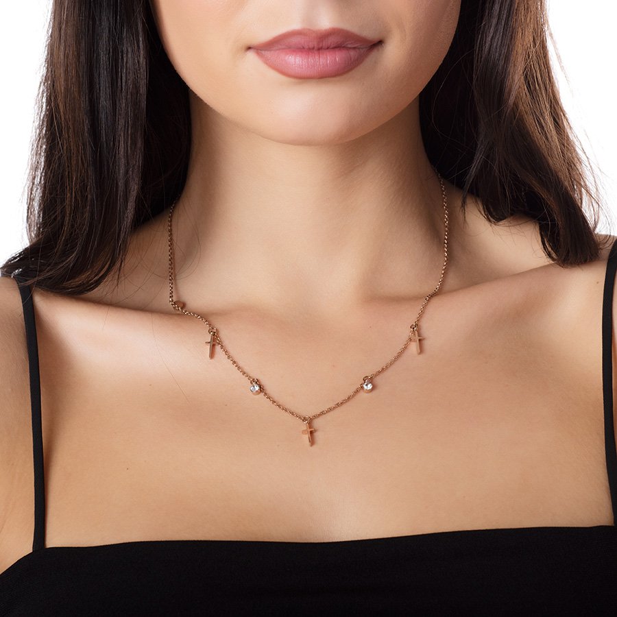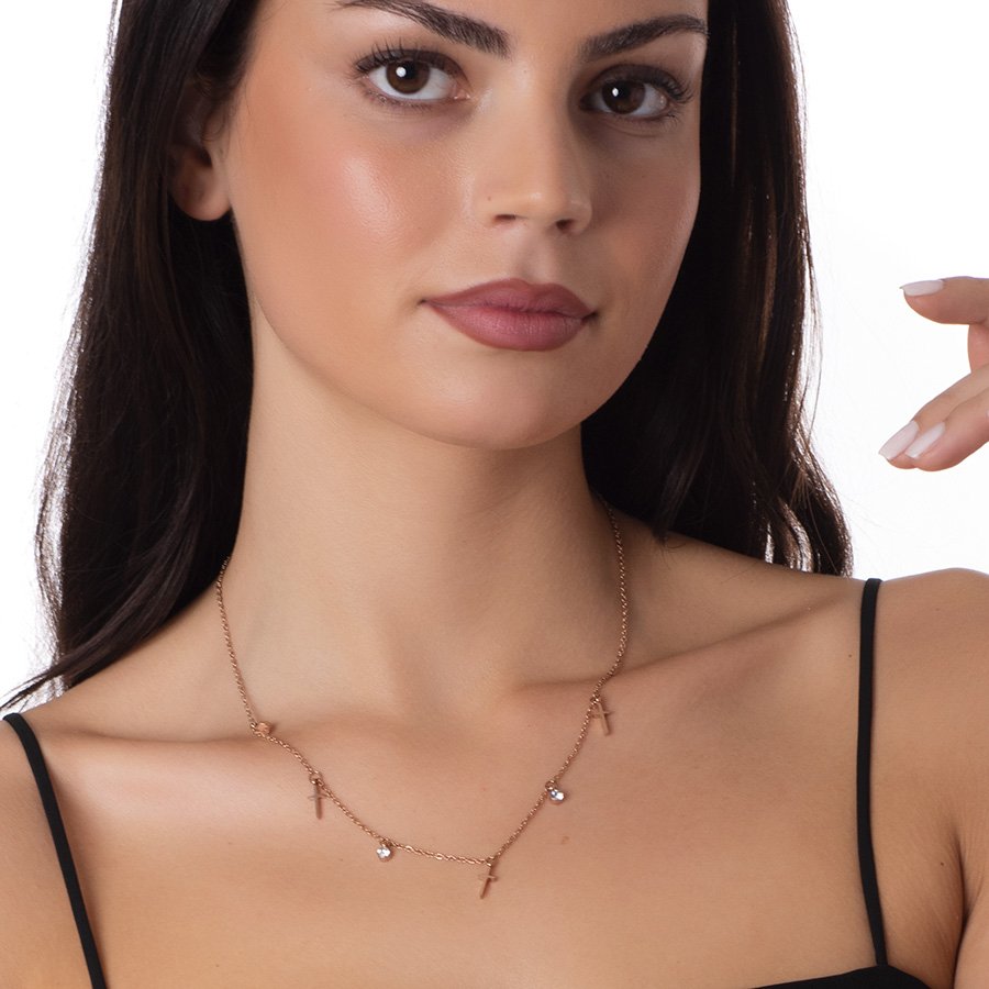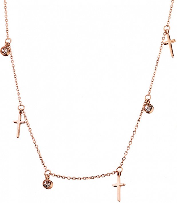 Κολιέ ατσάλινο με σταυρούς και πέτρες ζιργκόν