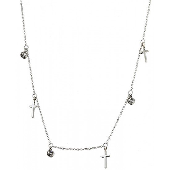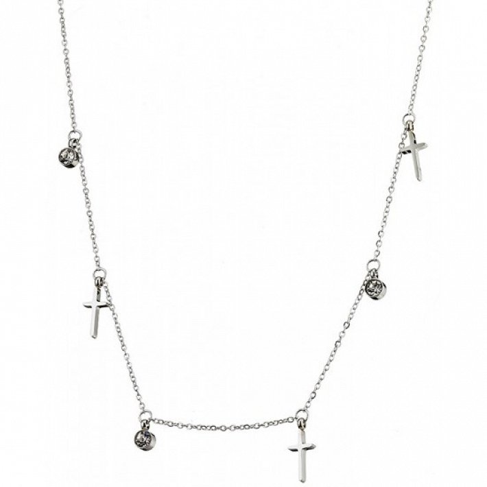 Κολιέ ατσάλινο με σταυρούς και πέτρες ζιργκόν