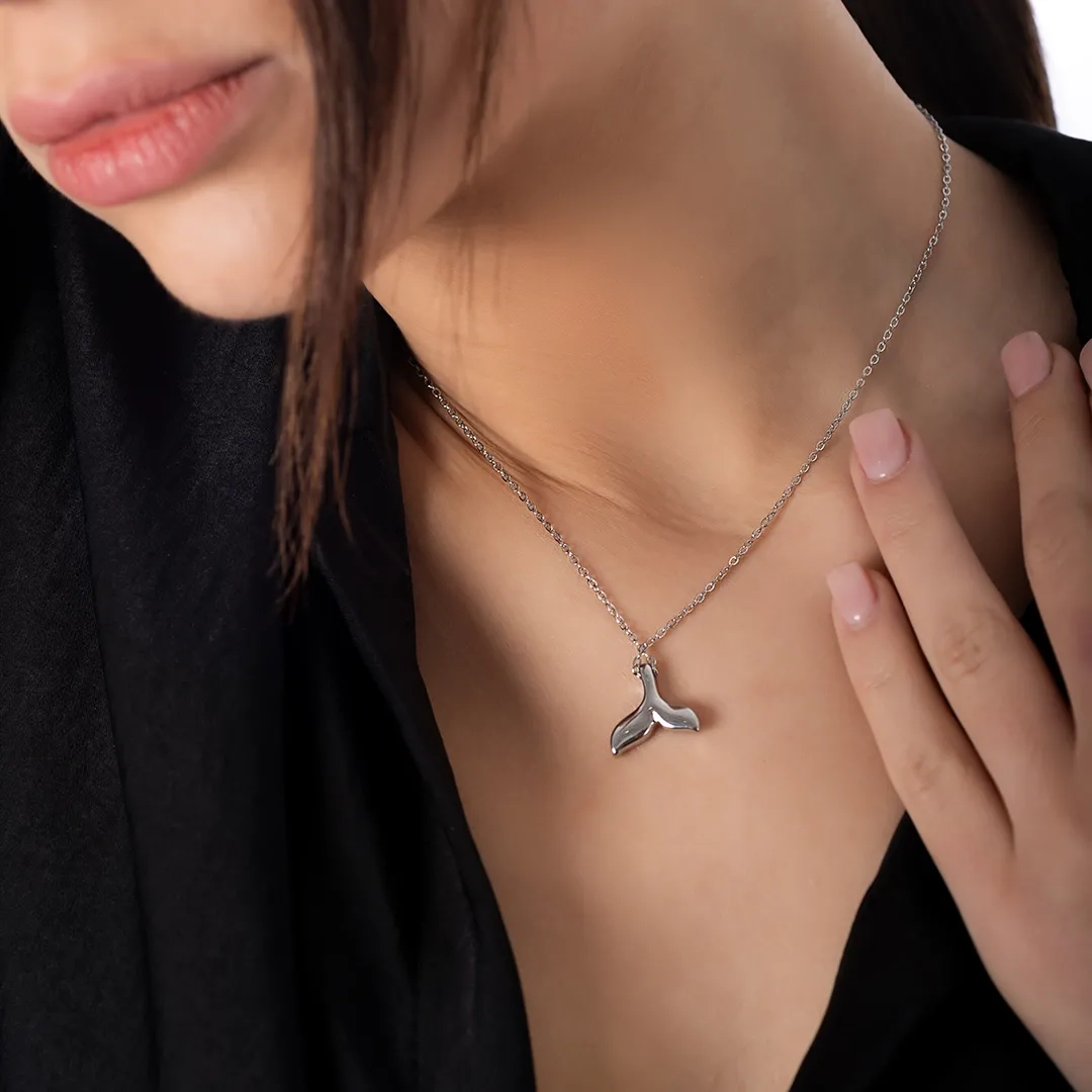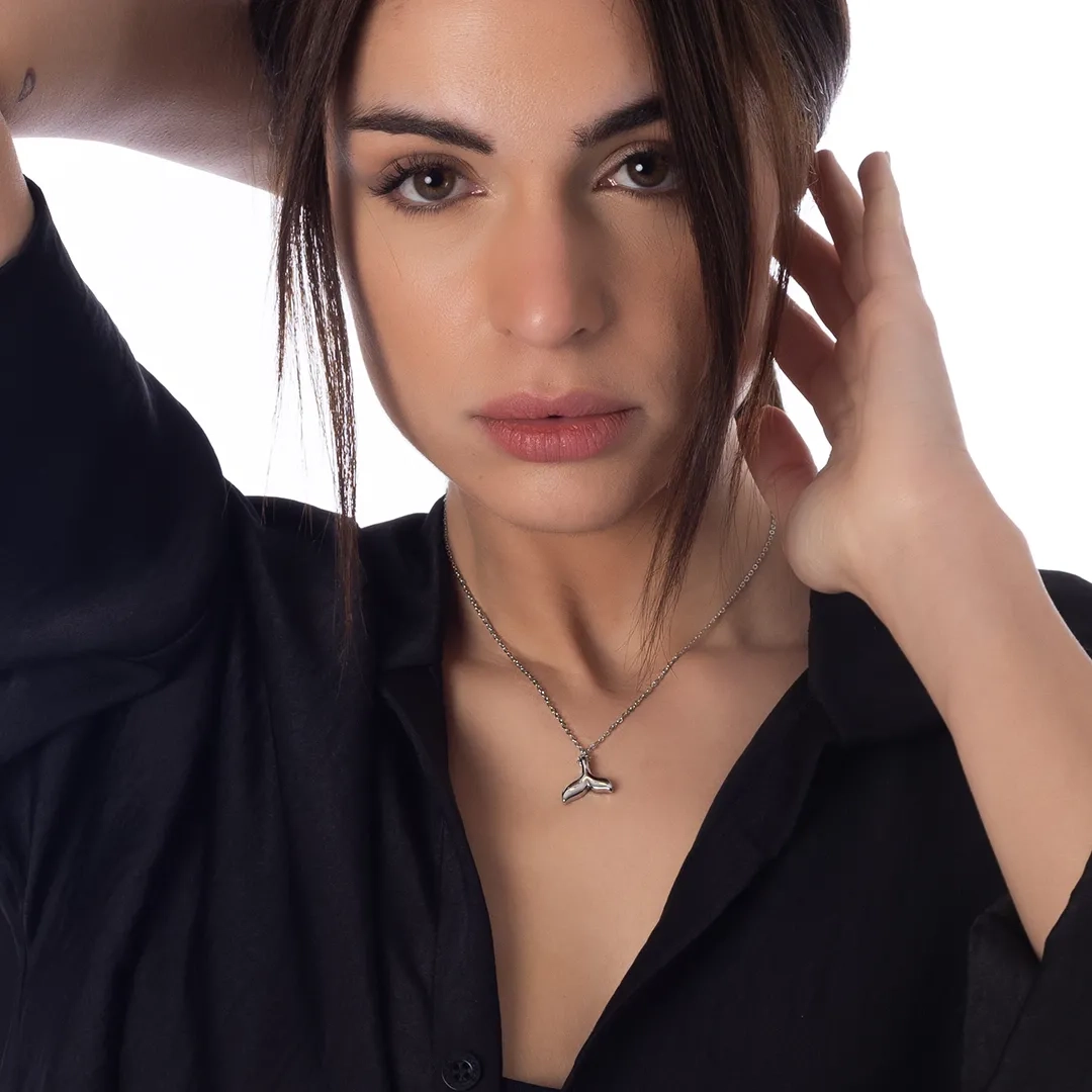 Κολιέ ατσάλινο ουρά φάλαινας με φίλντισι