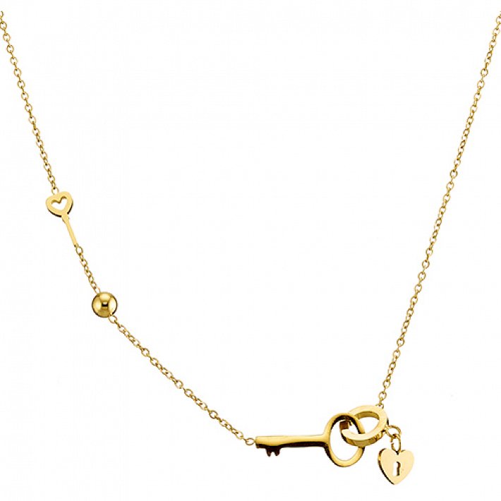 Κολιέ ατσάλινο σε χρυσό κλειδί με καρδιά