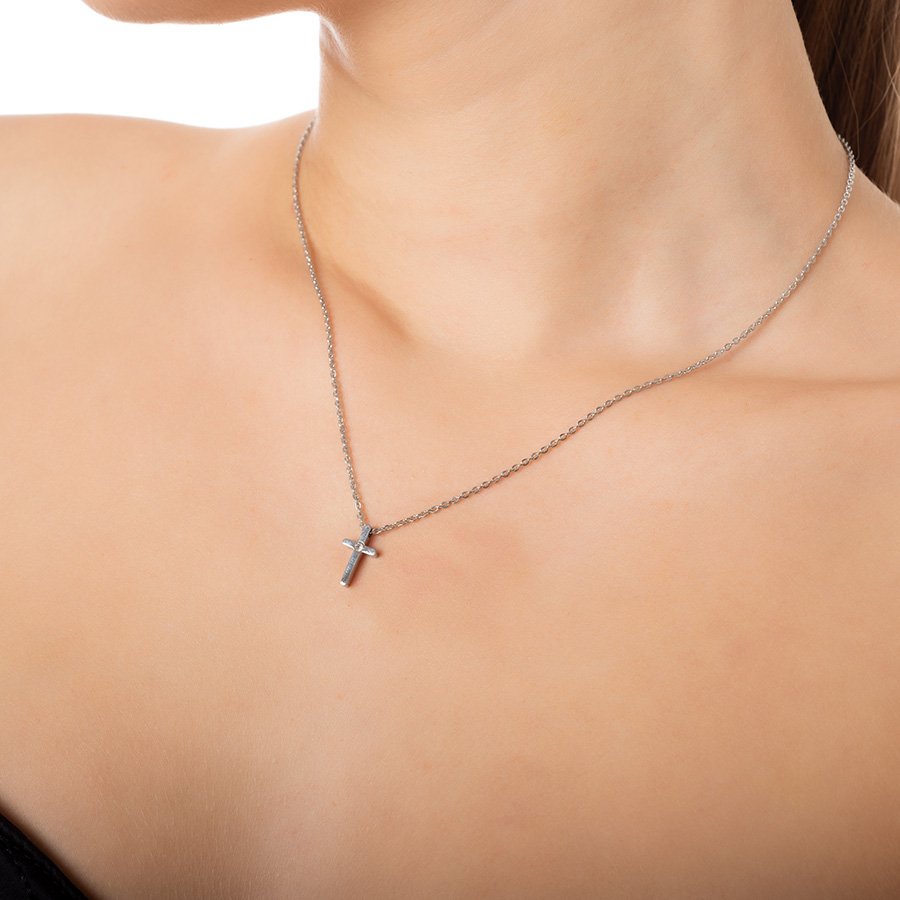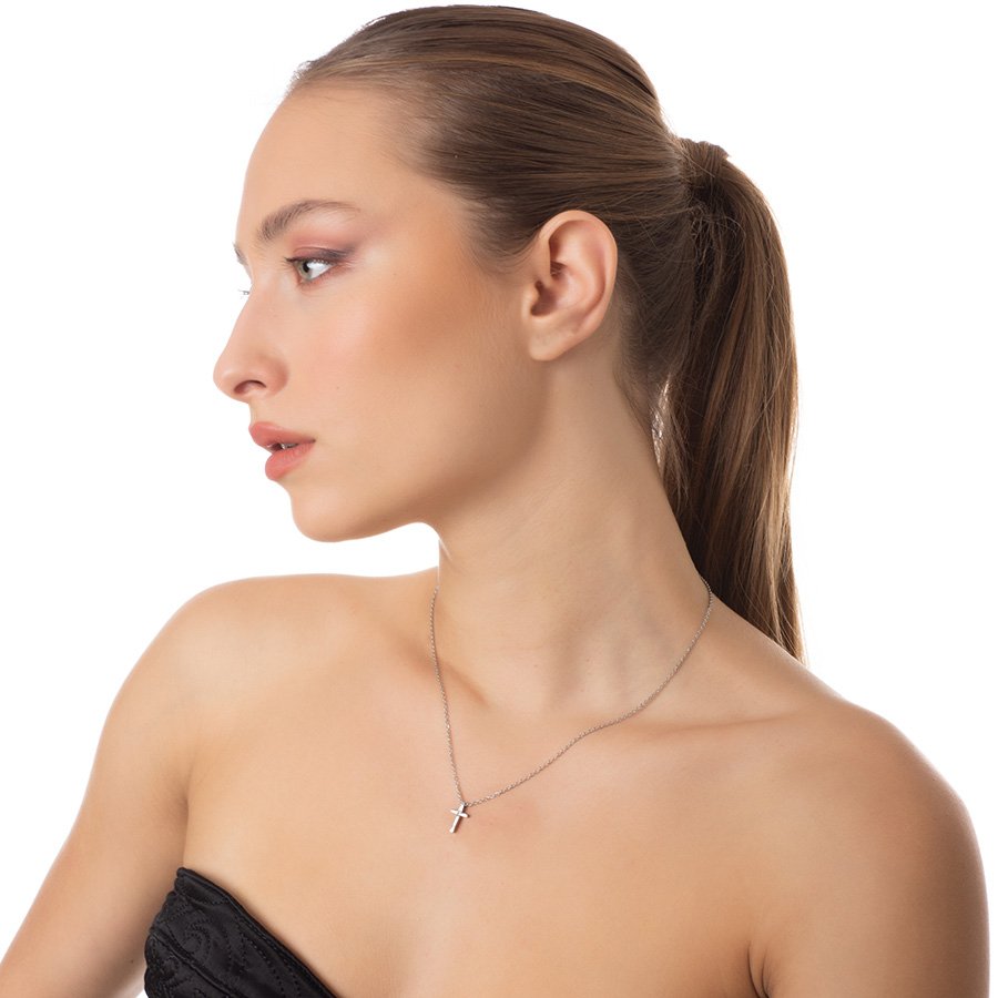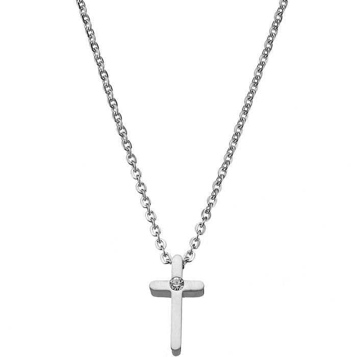 Κολιέ ατσάλινο σταυρός με πέτρα ζιργκόν