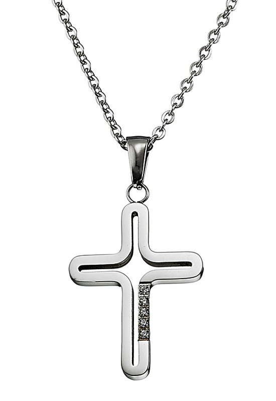 Κολιέ ατσάλινο σταυρός με πέτρες ζιργκόν