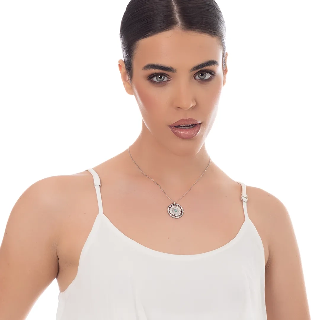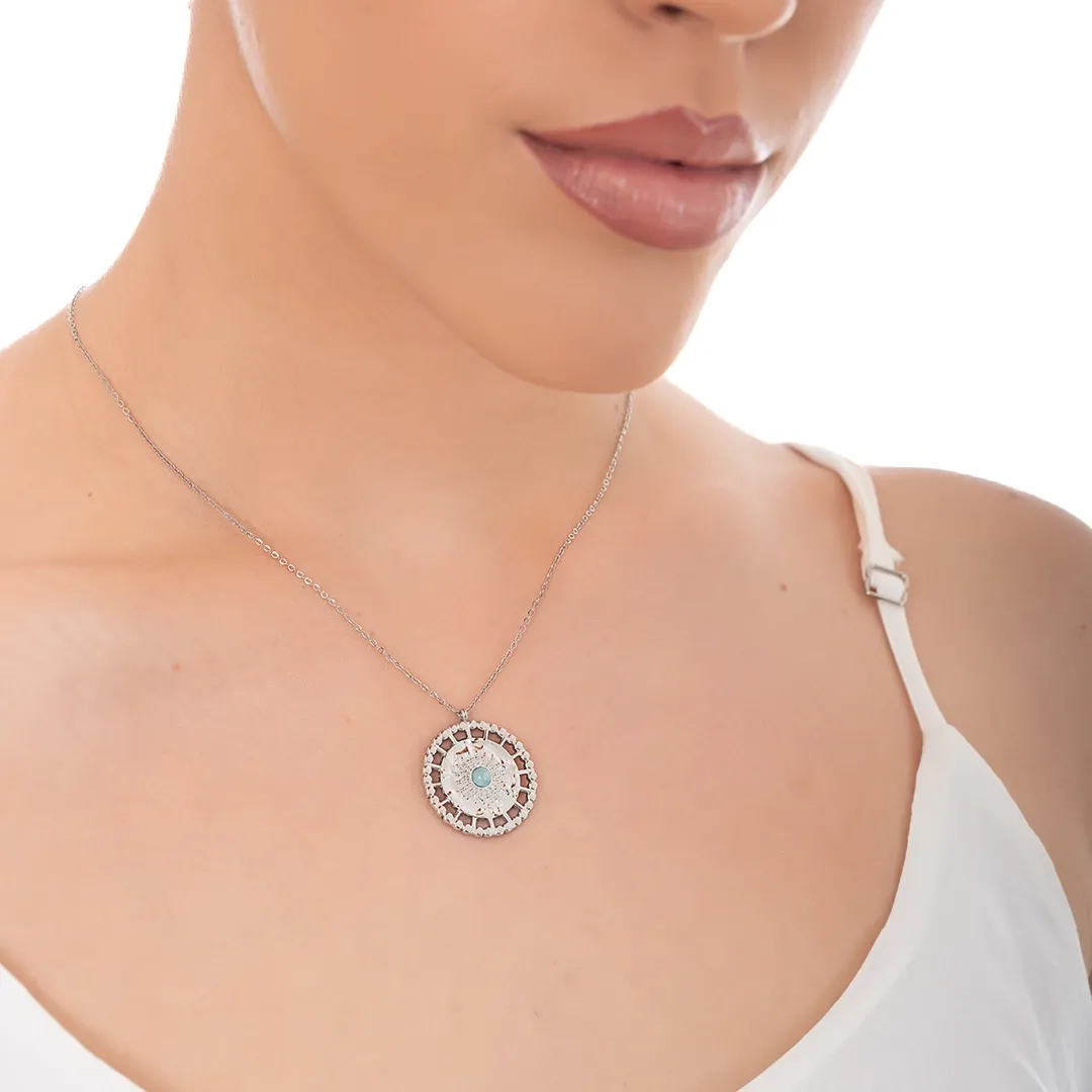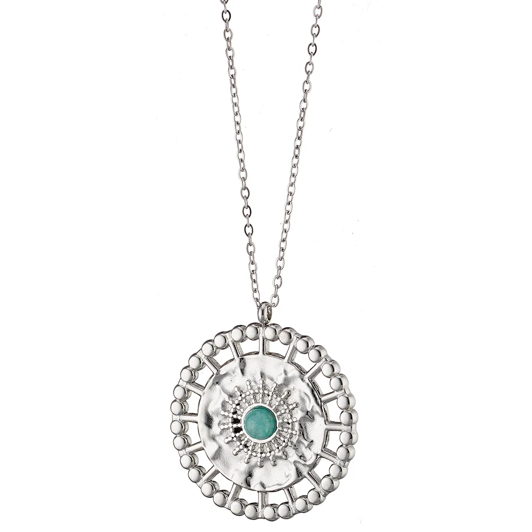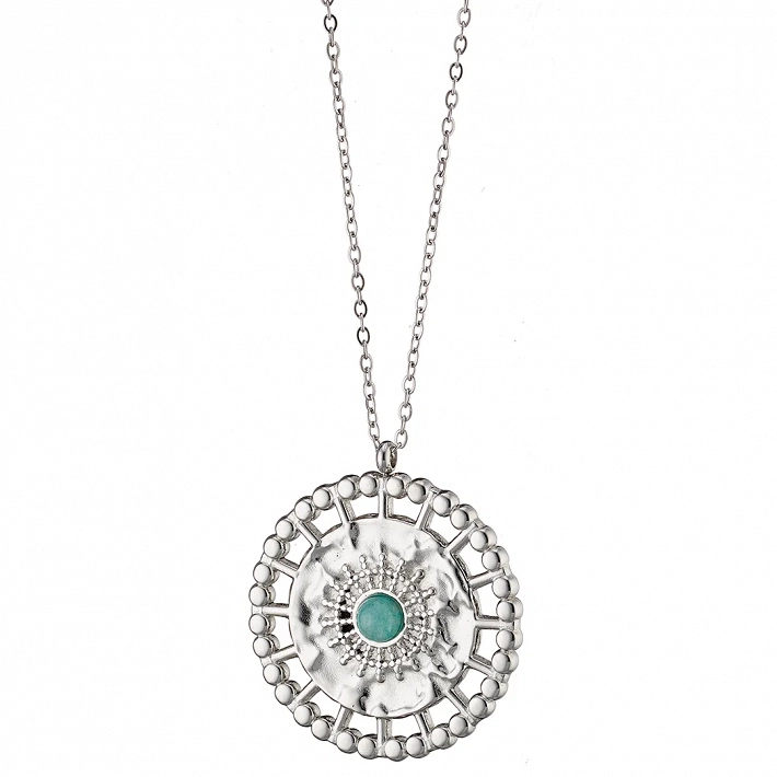 Κολιέ γυναικείο από ανοξείδωτο ατσάλι επιχρυσωμένο στρογγυλό με τυρκουάζ πέτρα