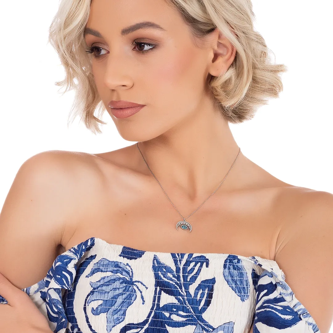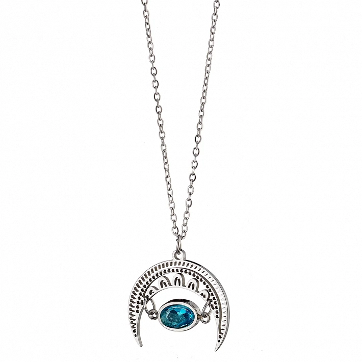 Κολιέ γυναικείο από ανοξείδωτο ατσάλι ματάκι με γαλάζιο ζιργκόν