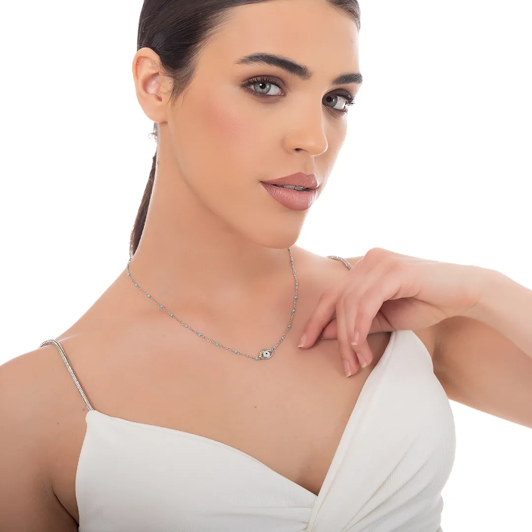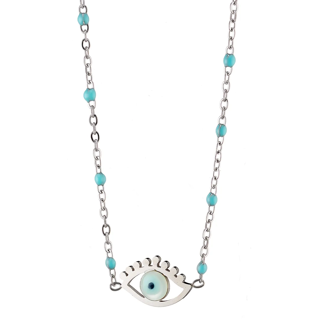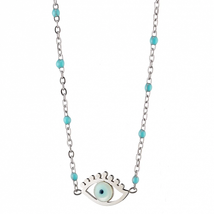 Κολιέ γυναικείο από ανοξείδωτο ατσάλι με ματάκι και γαλάζιες πέτρες
