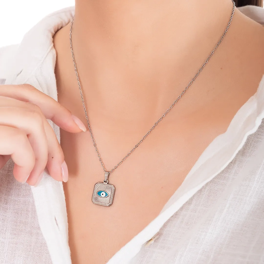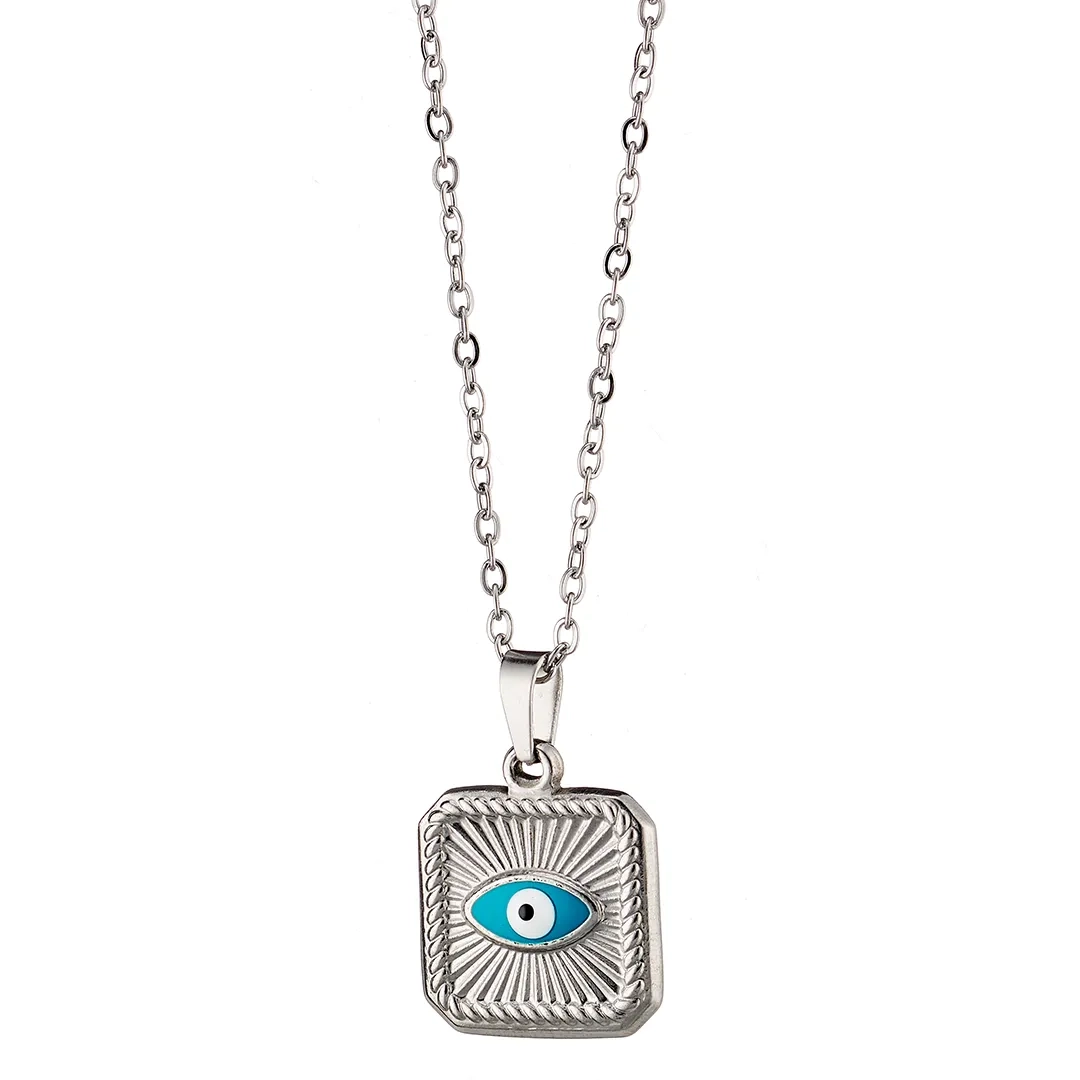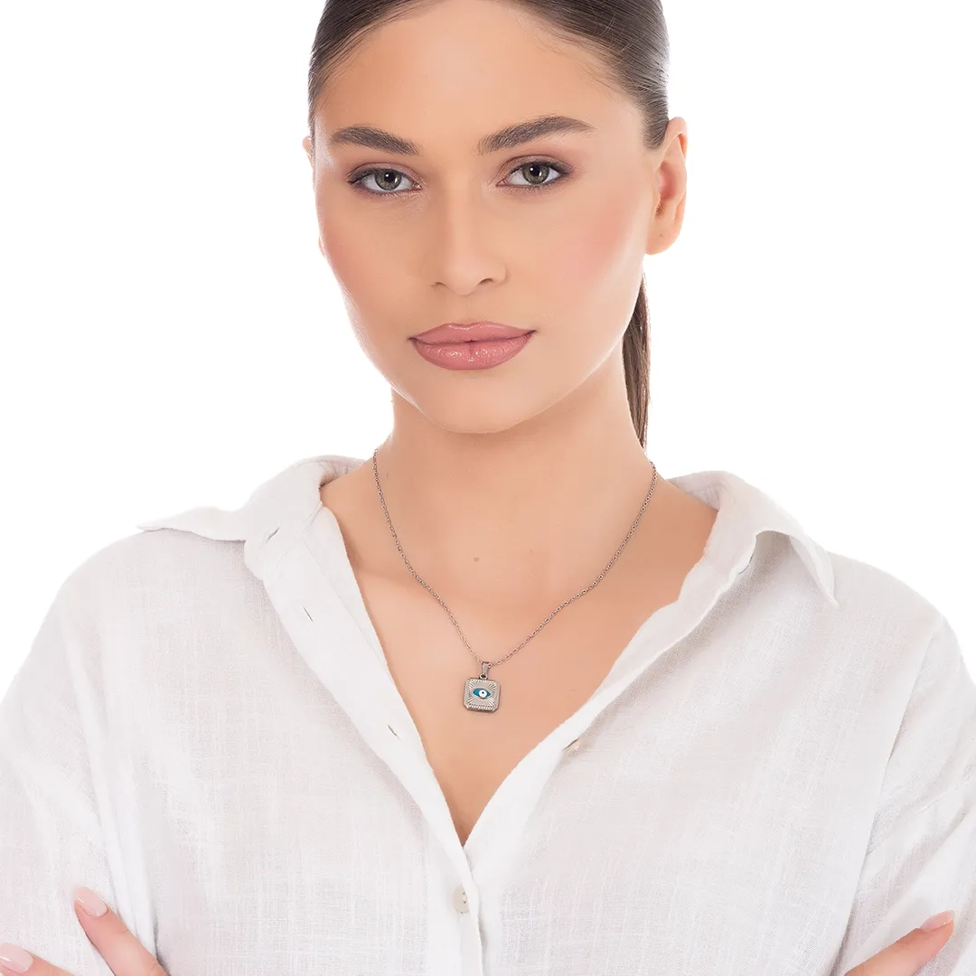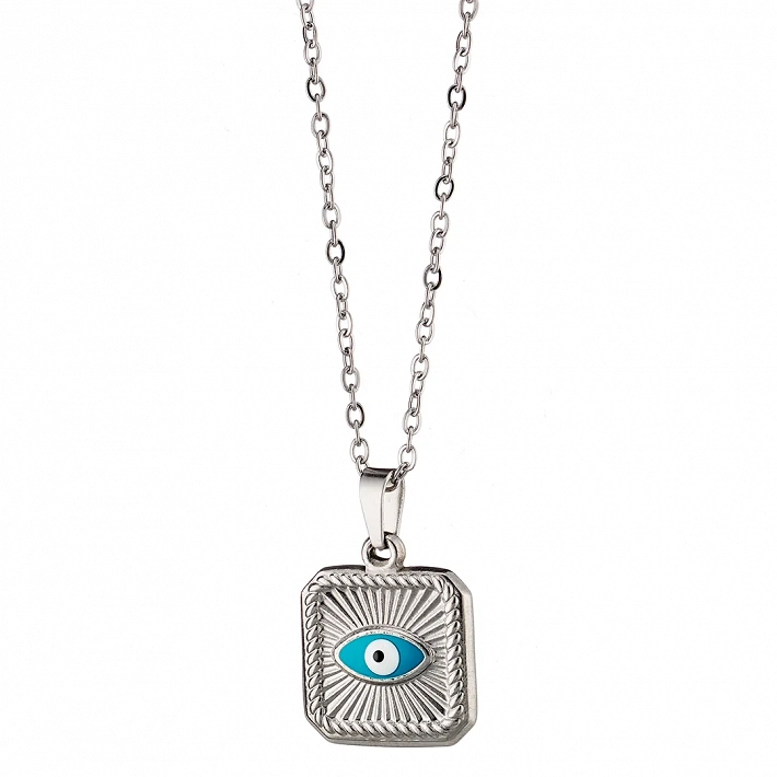 Κολιέ γυναικείο από ανοξείδωτο ατσάλι τετράγωνο με ματάκι