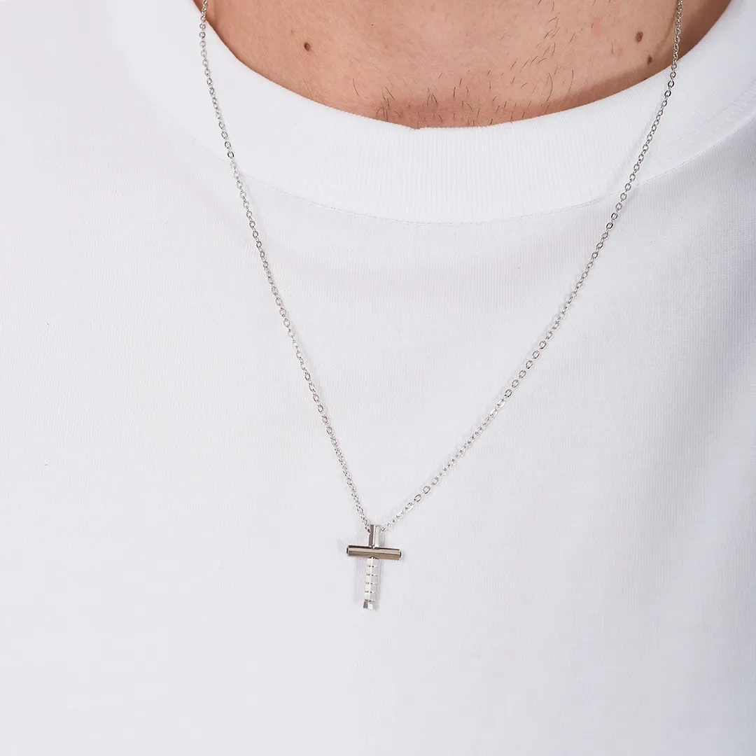 Κολιέ σταυρός αντρικός ατσάλι σε ασημί με μαύρο