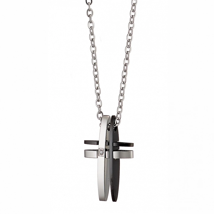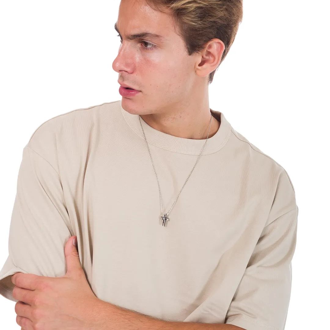 Κολιέ σταυρός αντρικός ατσάλι σε ασημί με μαύρο