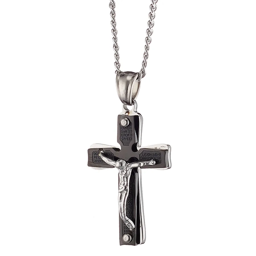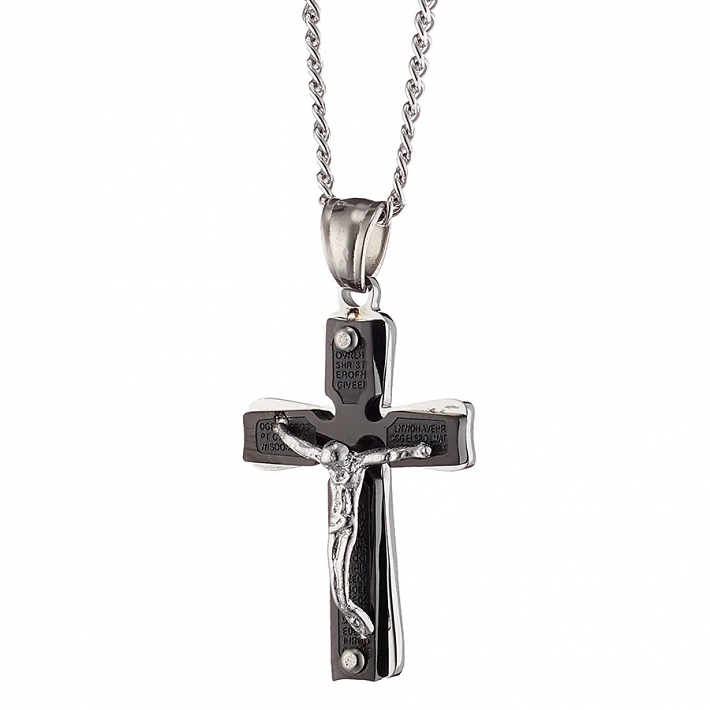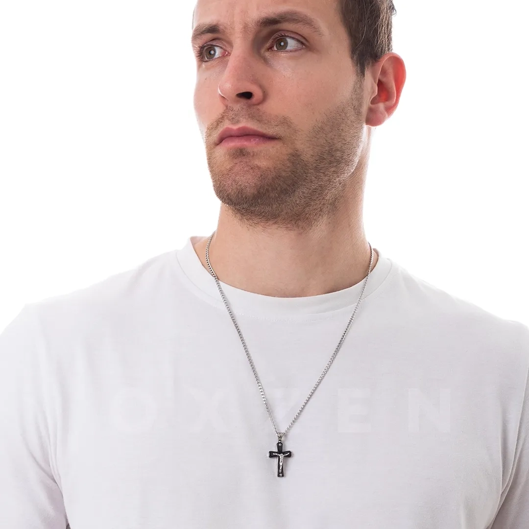 Κολιέ σταυρός αντρικός ατσάλι σε ασημί με μαύρο