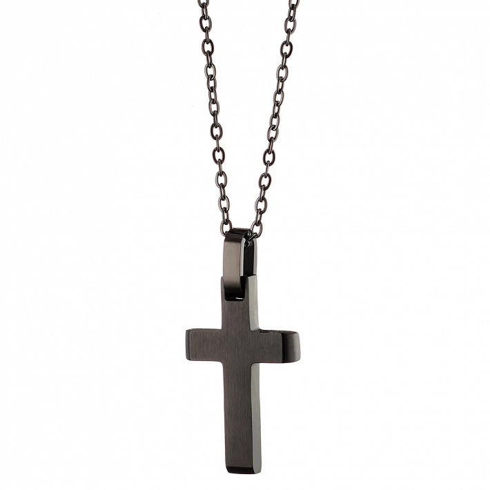 Κολιέ σταυρός αντρικός ατσάλι σε ασημί με μαύρο