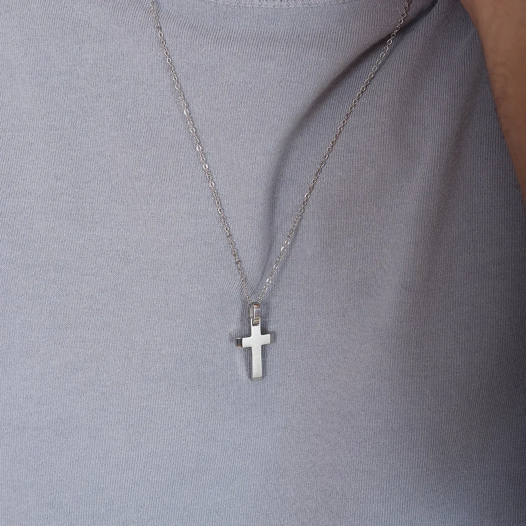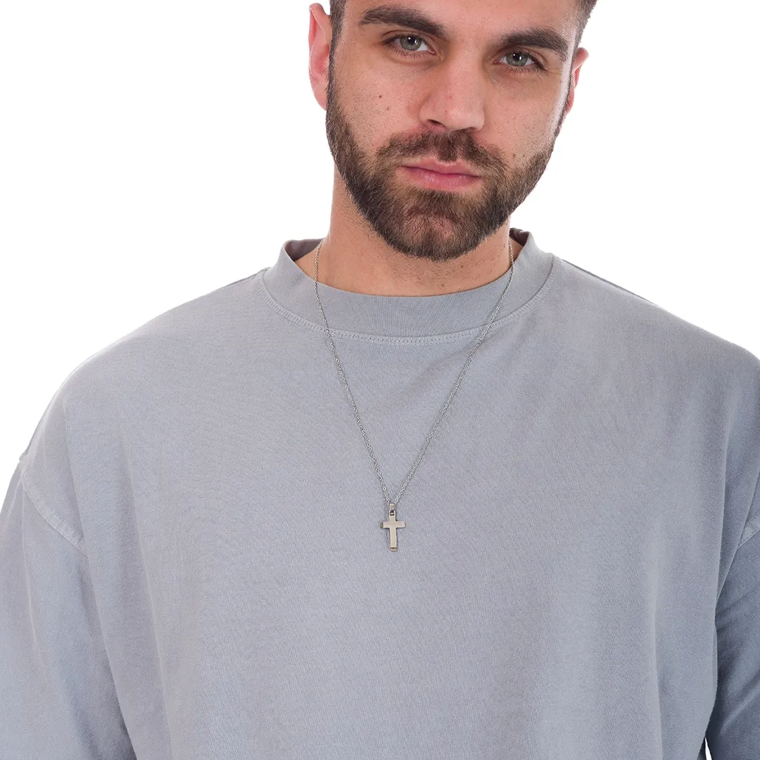 Κολιέ σταυρός με αλυσίδα αντρικός ατσάλι