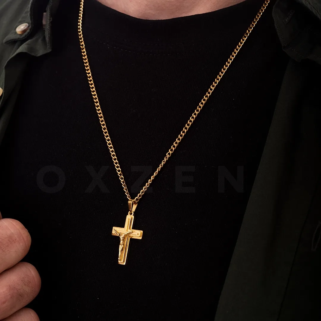Κολιέ σταυρός αντρικός ατσάλι