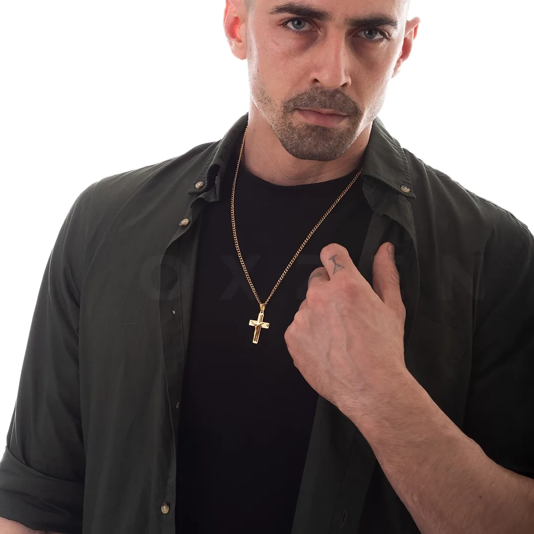 Κολιέ σταυρός με αλυσίδα αντρικός ατσάλι