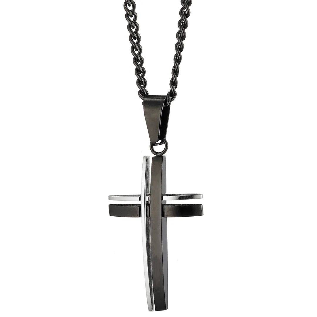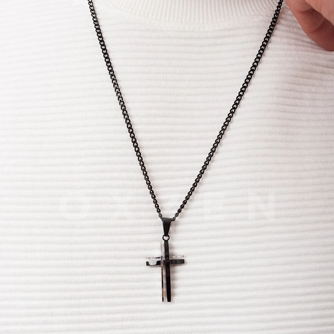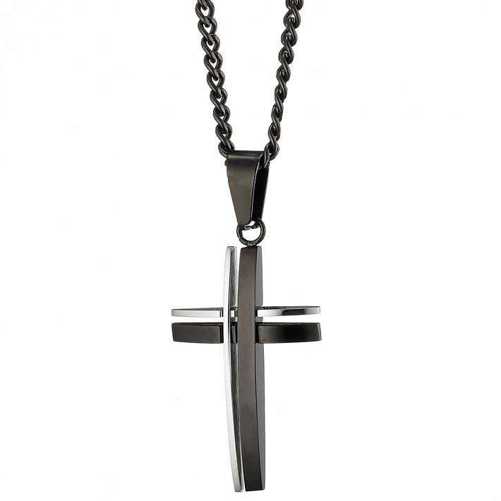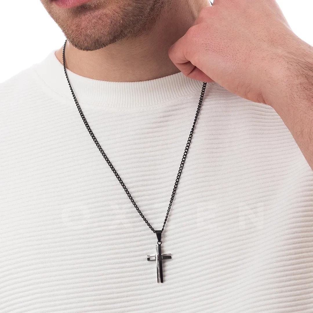 Κολιέ σταυρός αντρικός ατσάλι σε ασημί με μαύρο
