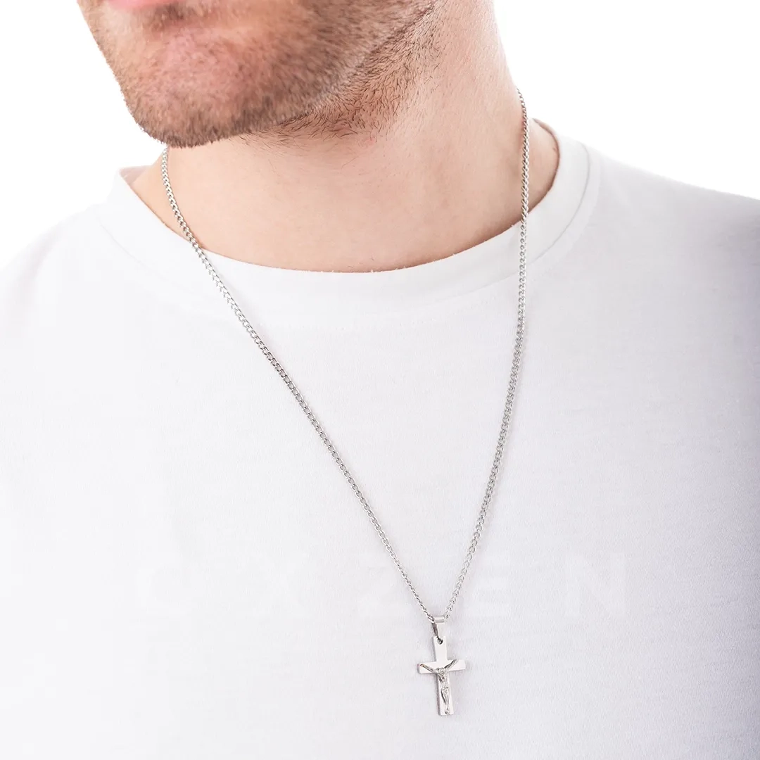 Κολιέ σταυρός με αλυσίδα αντρικός ατσάλι