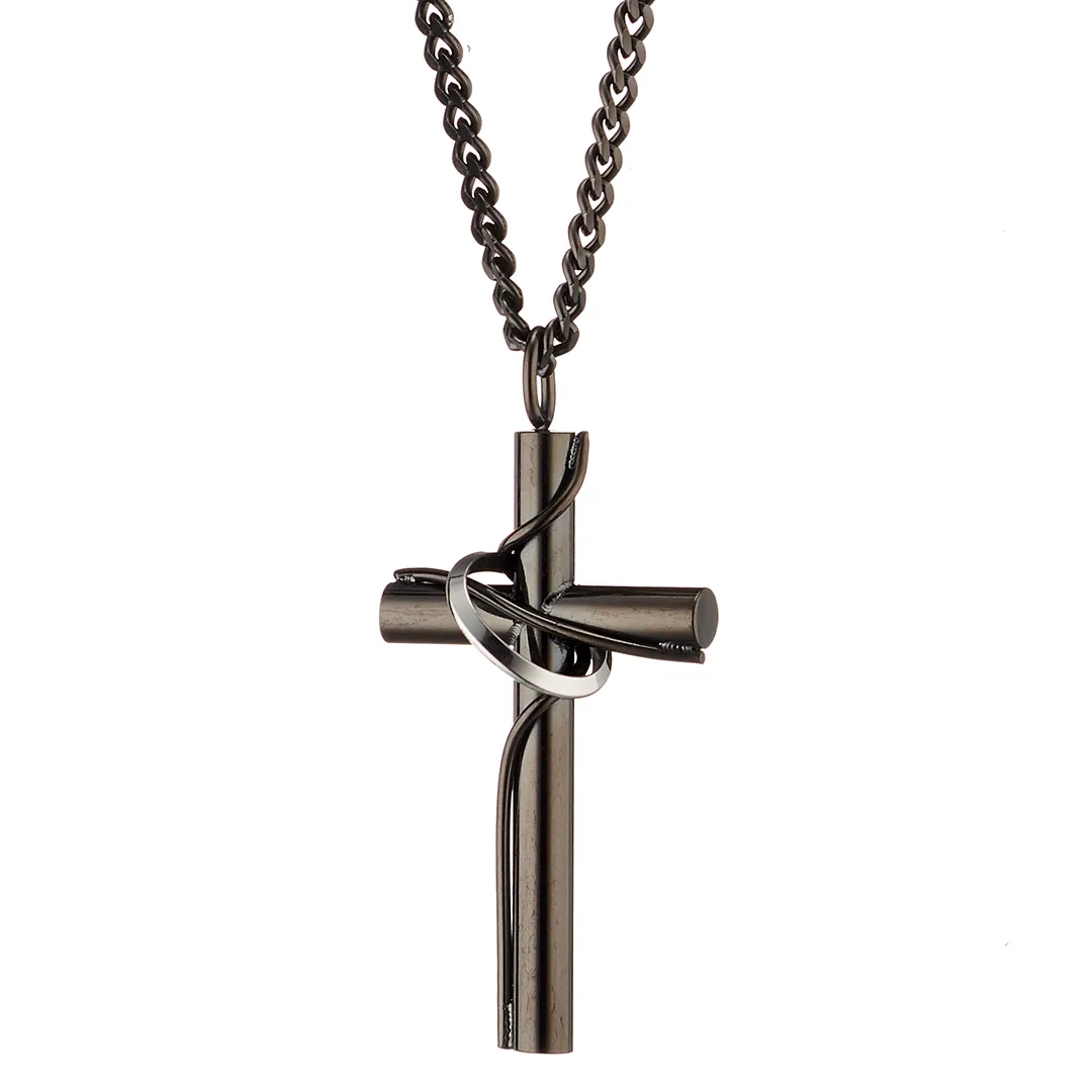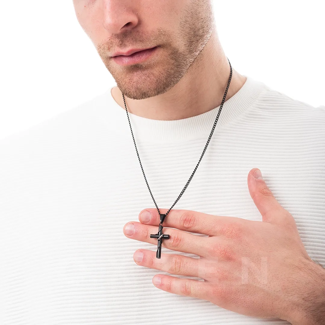 Κολιέ σταυρός με αλυσίδα ατσάλι
