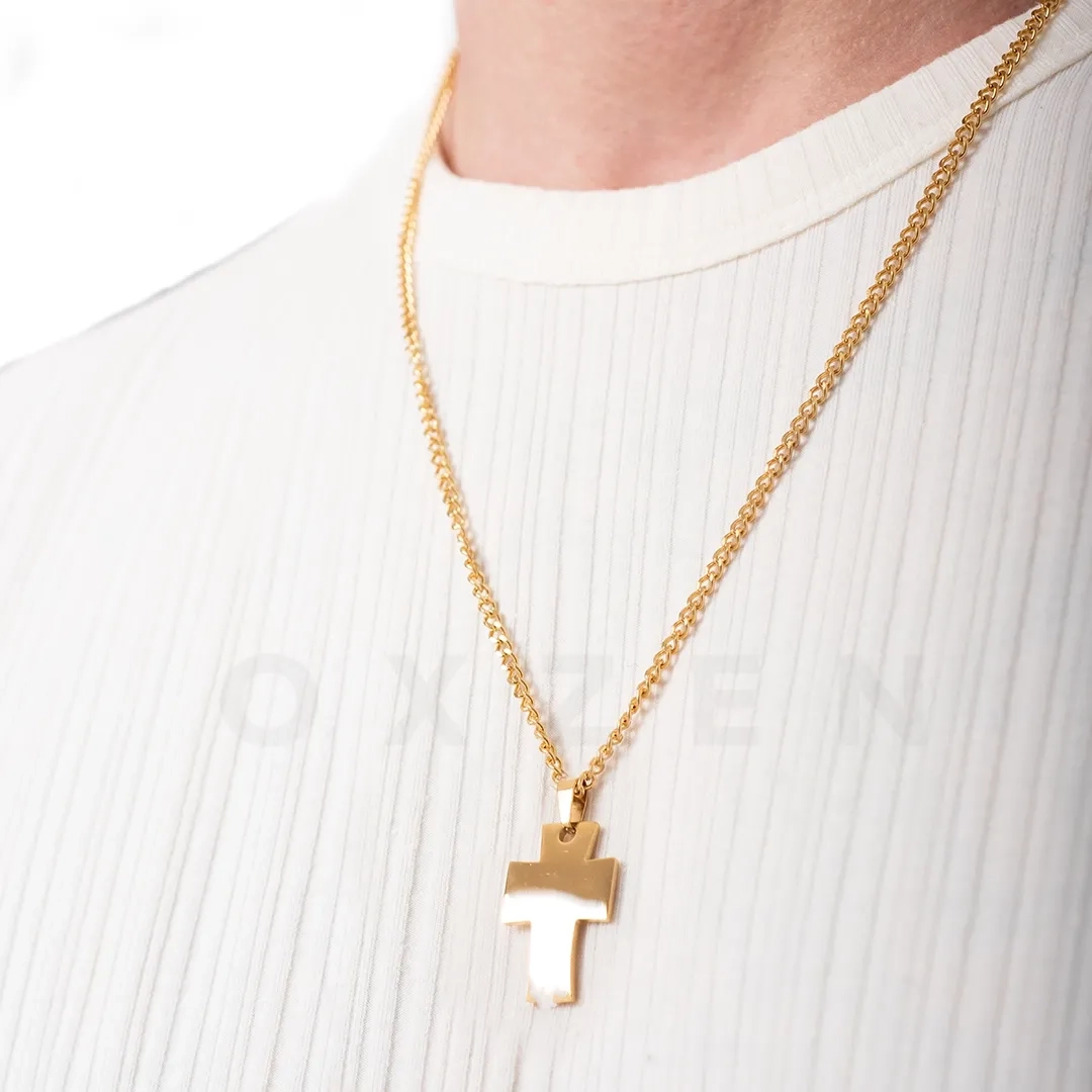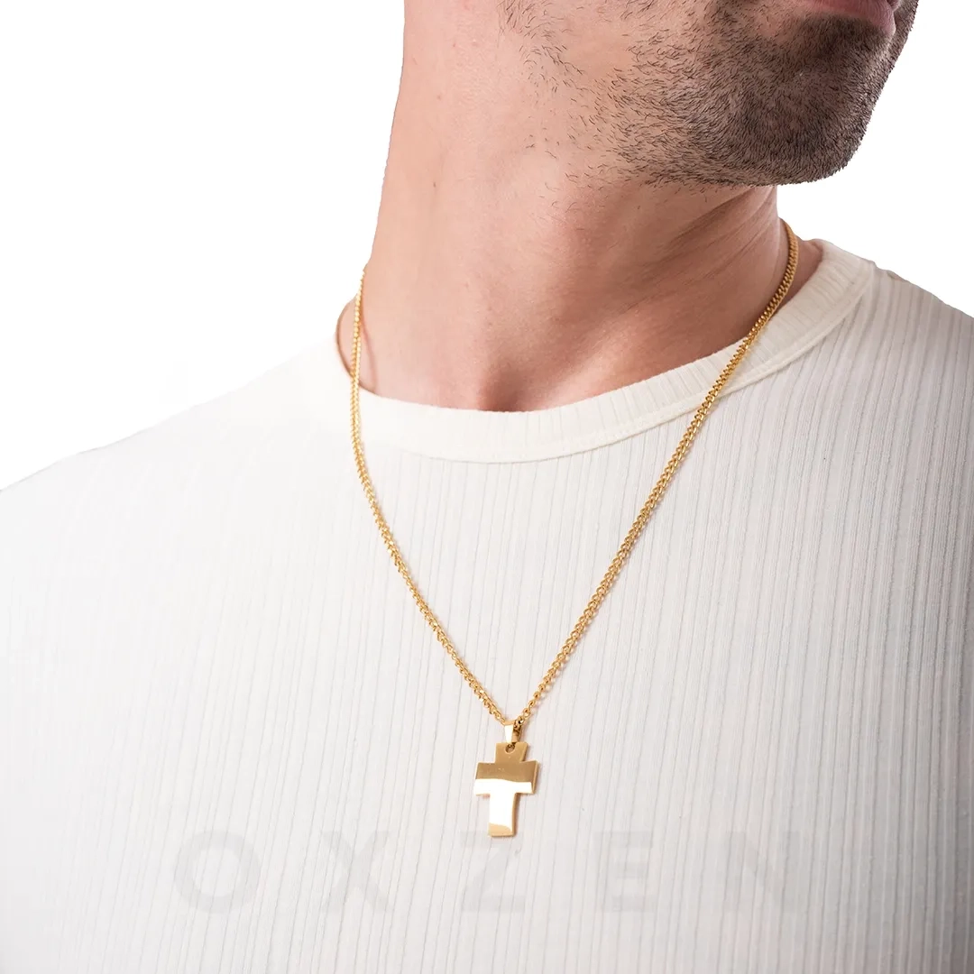 Κολιέ σταυρός με αλυσίδα αντρικός ατσάλι