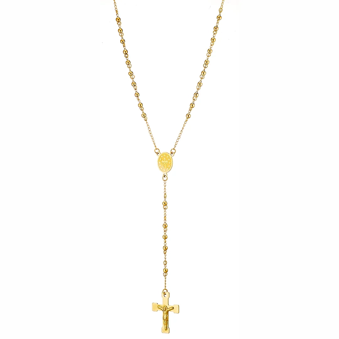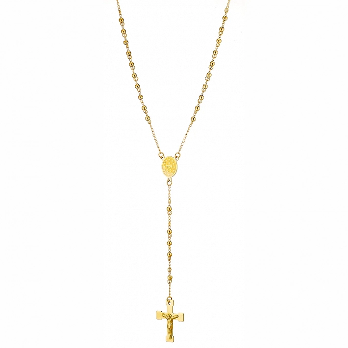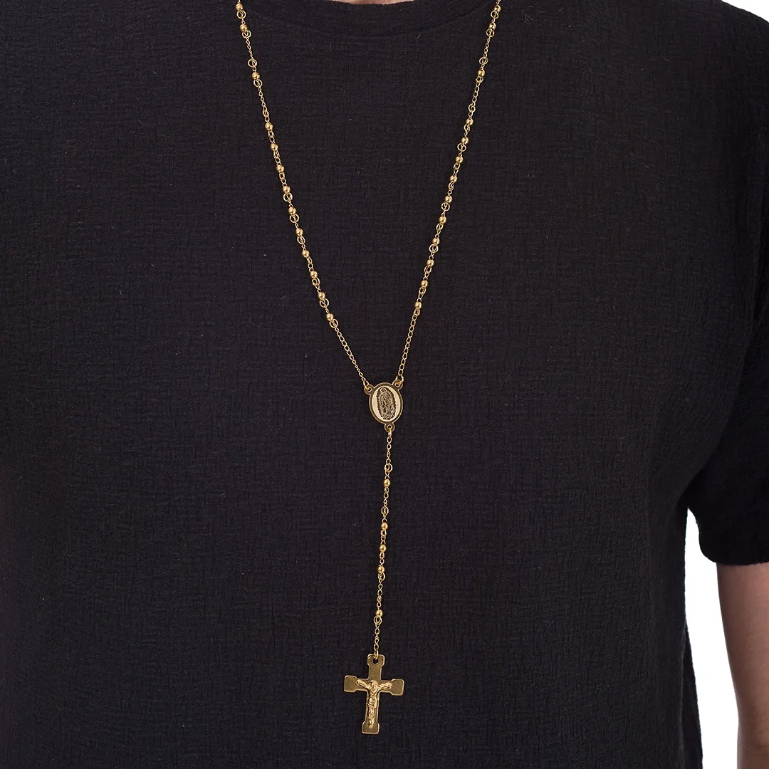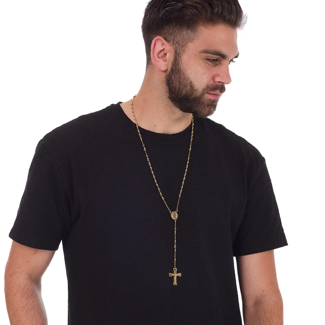 Κολιέ Unisex ροζάριο από ανοξείδωτο ατσάλι επιχρυσωμένο με τον εσταυρωμένο