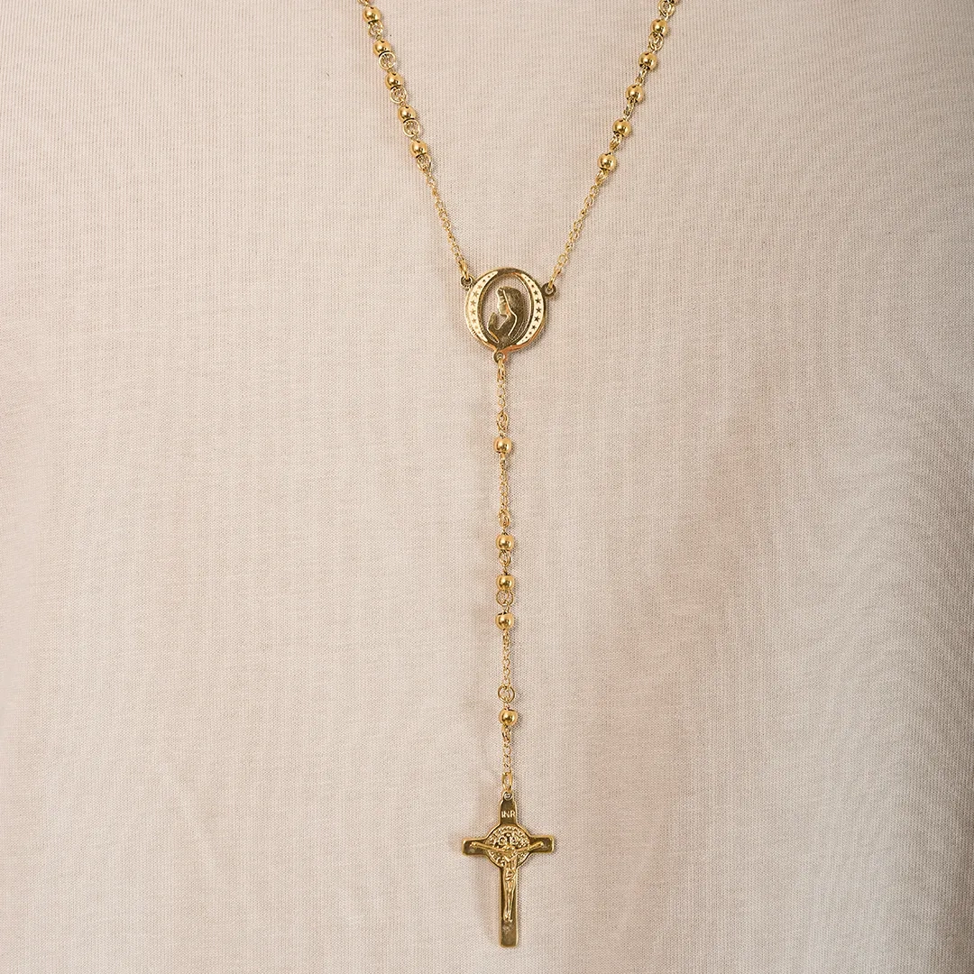 Κολιέ Unisex ροζάριο από ανοξείδωτο ατσάλι με την Madonna και τον εσταυρωμένο