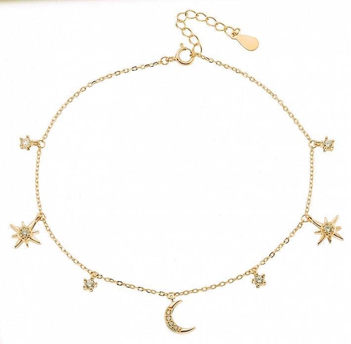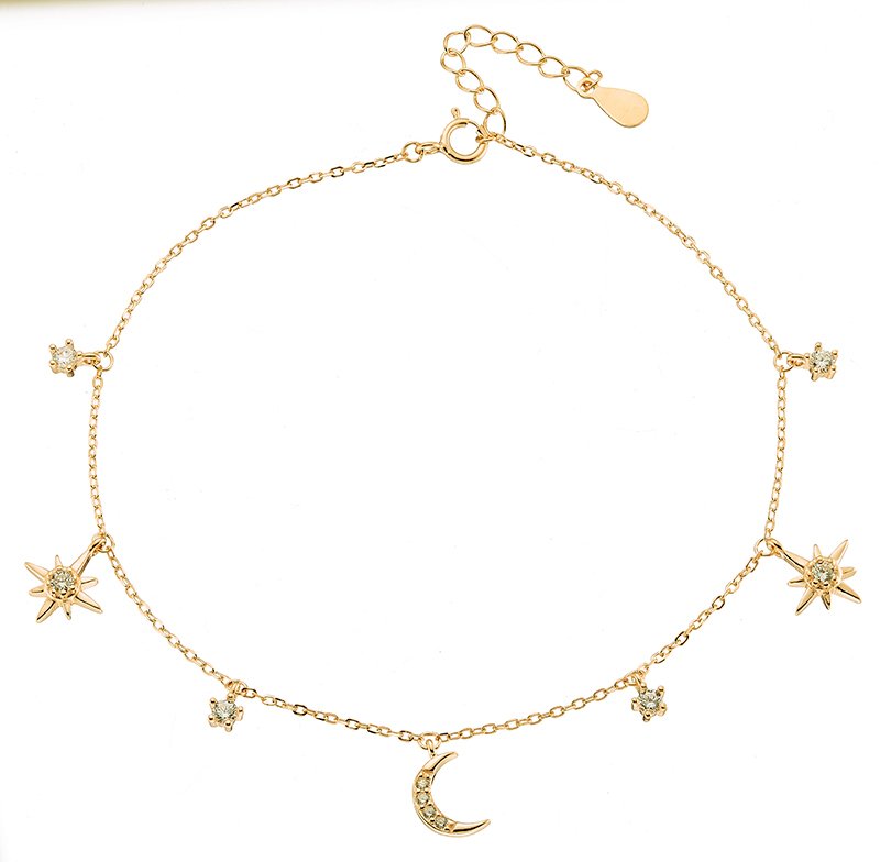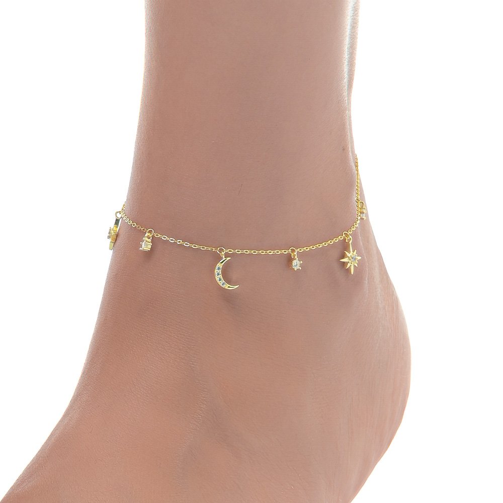 Oxzen αλυσίδα ποδιού ασημένια με κρεμαστά στοιχεία