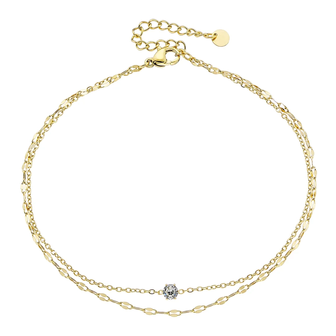 Oxzen αλυσίδα ποδιού ατσάλινη με διπλή αλυσίδα και ένα λευκό ζιργκόν