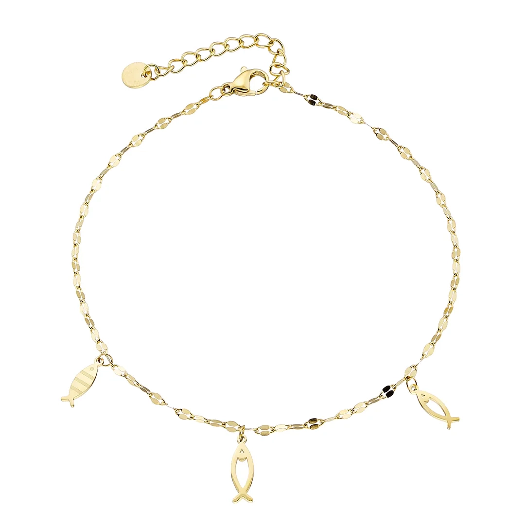 Oxzen αλυσίδα ποδιού ατσάλινη με κρεμαστά ψαράκια