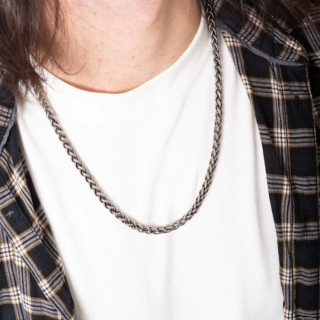 Oxzen ανδρική αλυσίδα από ανοξείδωτο ατσάλι στρογγυλή 5mm γκρί αντικέ