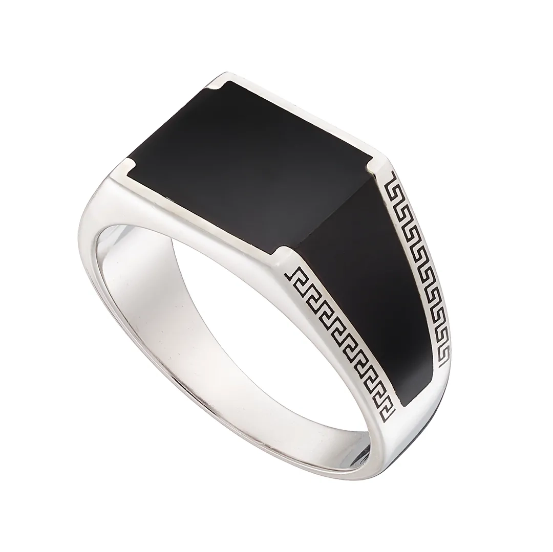 Oxzen ανδρικό δαχτυλίδι από ασήμι επιπλατινωμέμο με μαύρη πέτρα