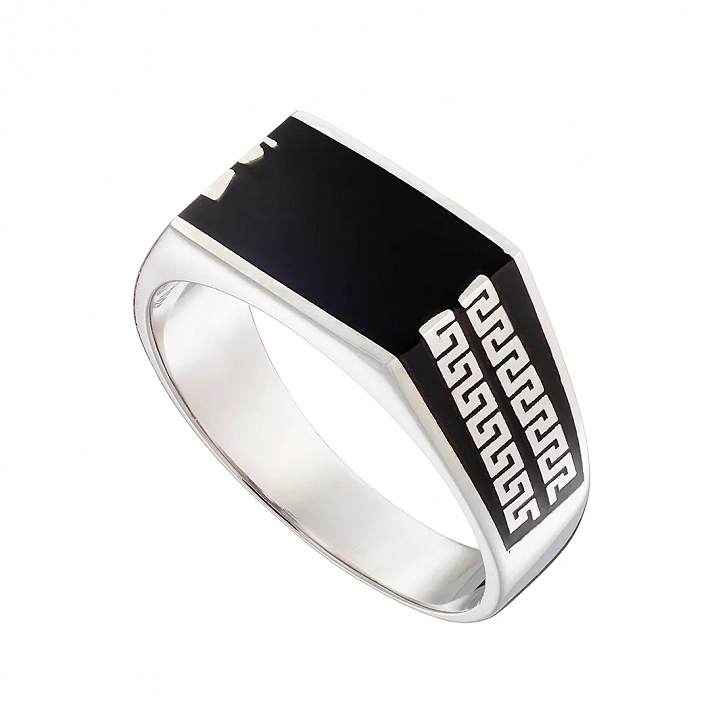 Oxzen ανδρικό δαχτυλίδι από ασήμι επιπλατινωμένο με μαύρη πέτρα