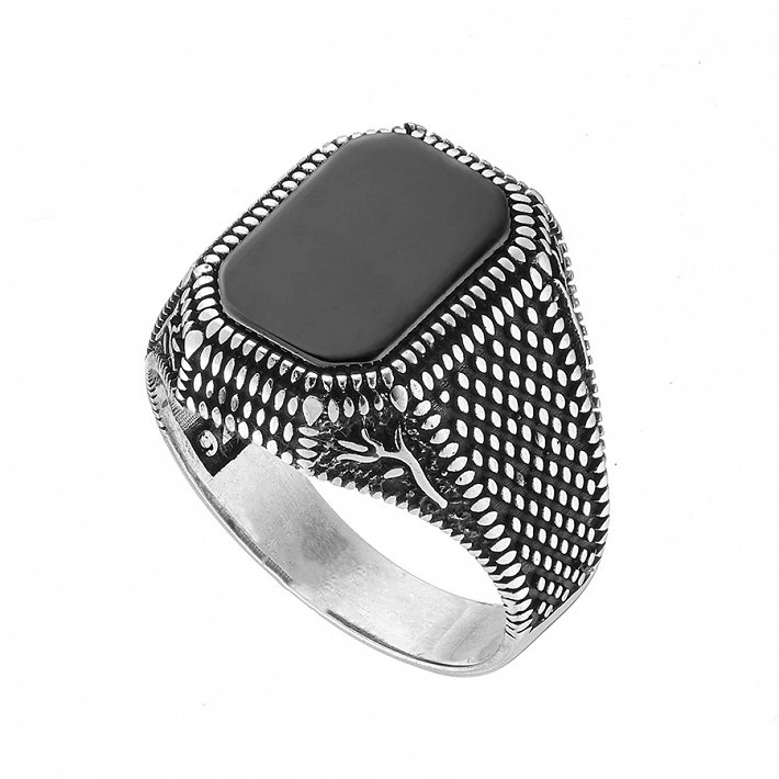 Oxzen ανδρικό δαχτυλίδι ασημένιο, με ορθογώνια πέτρα μαύρο αχάτη