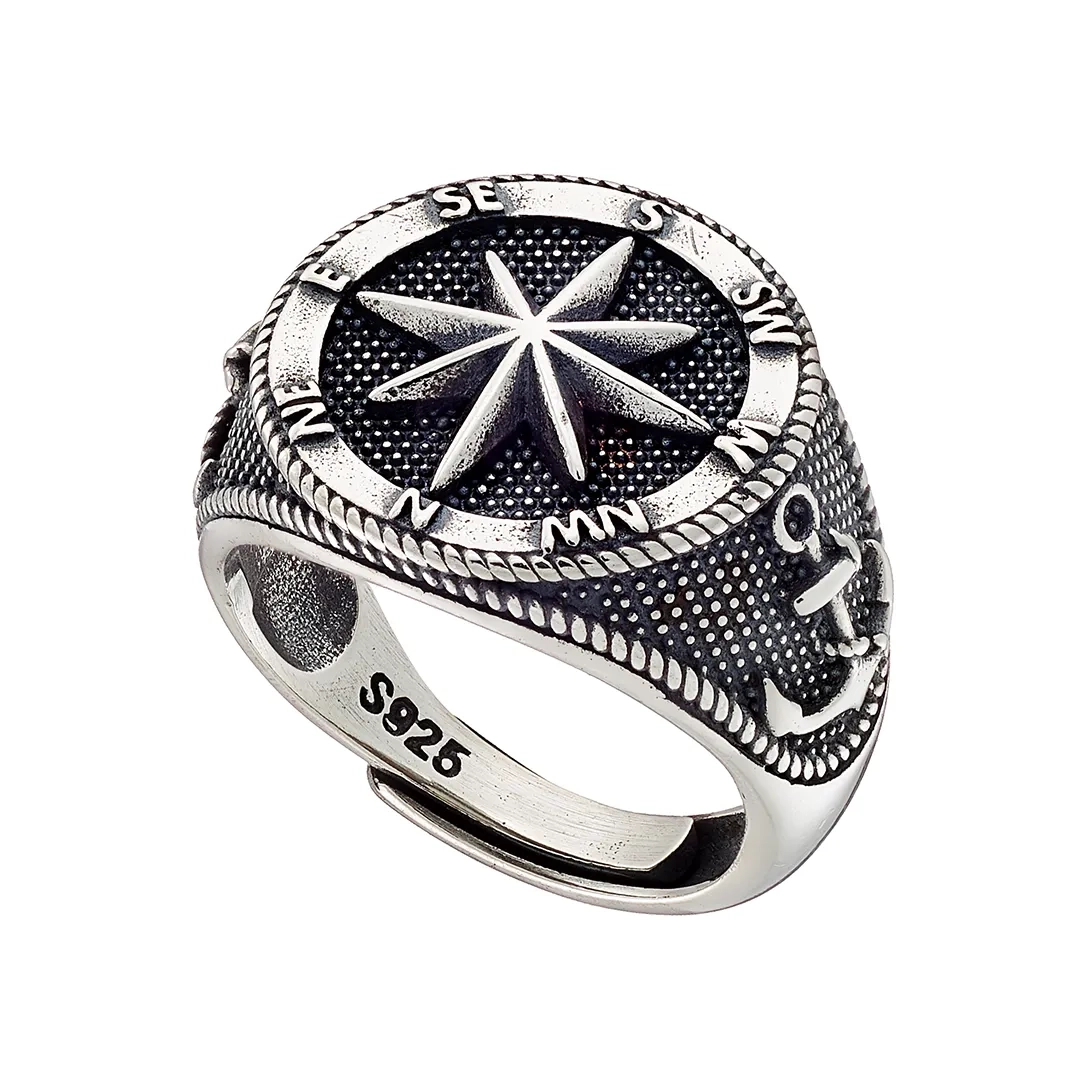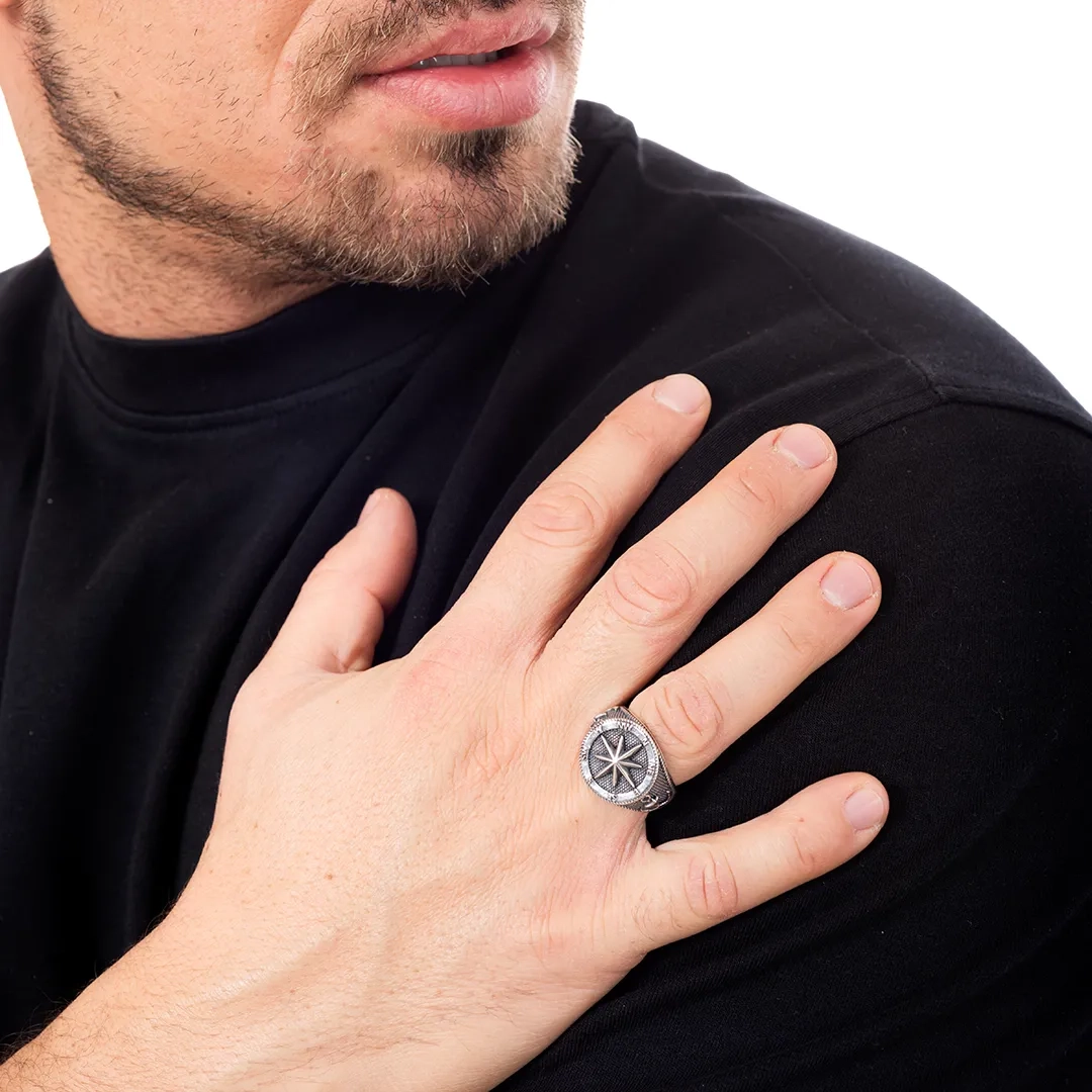 Oxzen ανδρικό δαχτυλίδι ασημένιο με πυξίδα free size