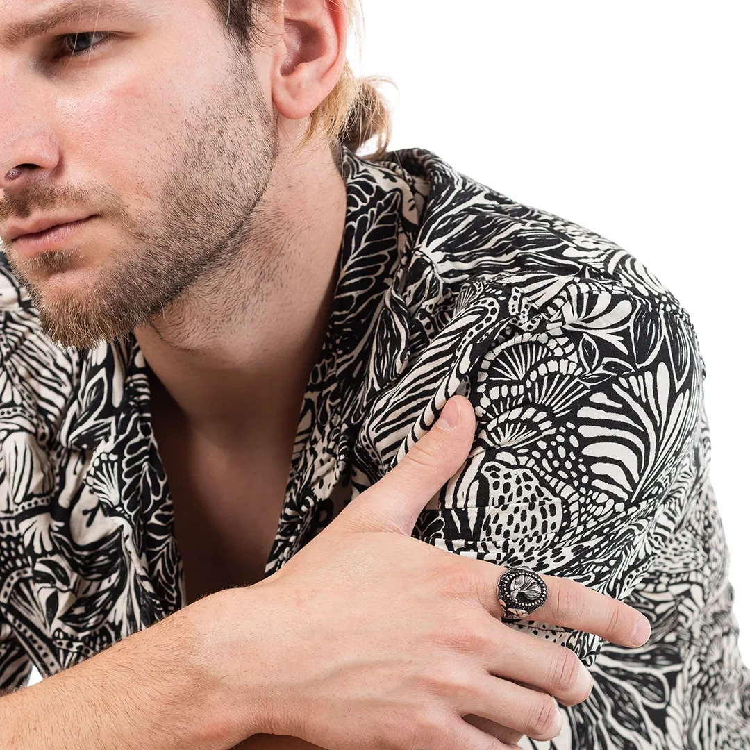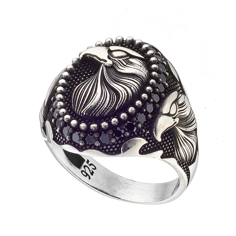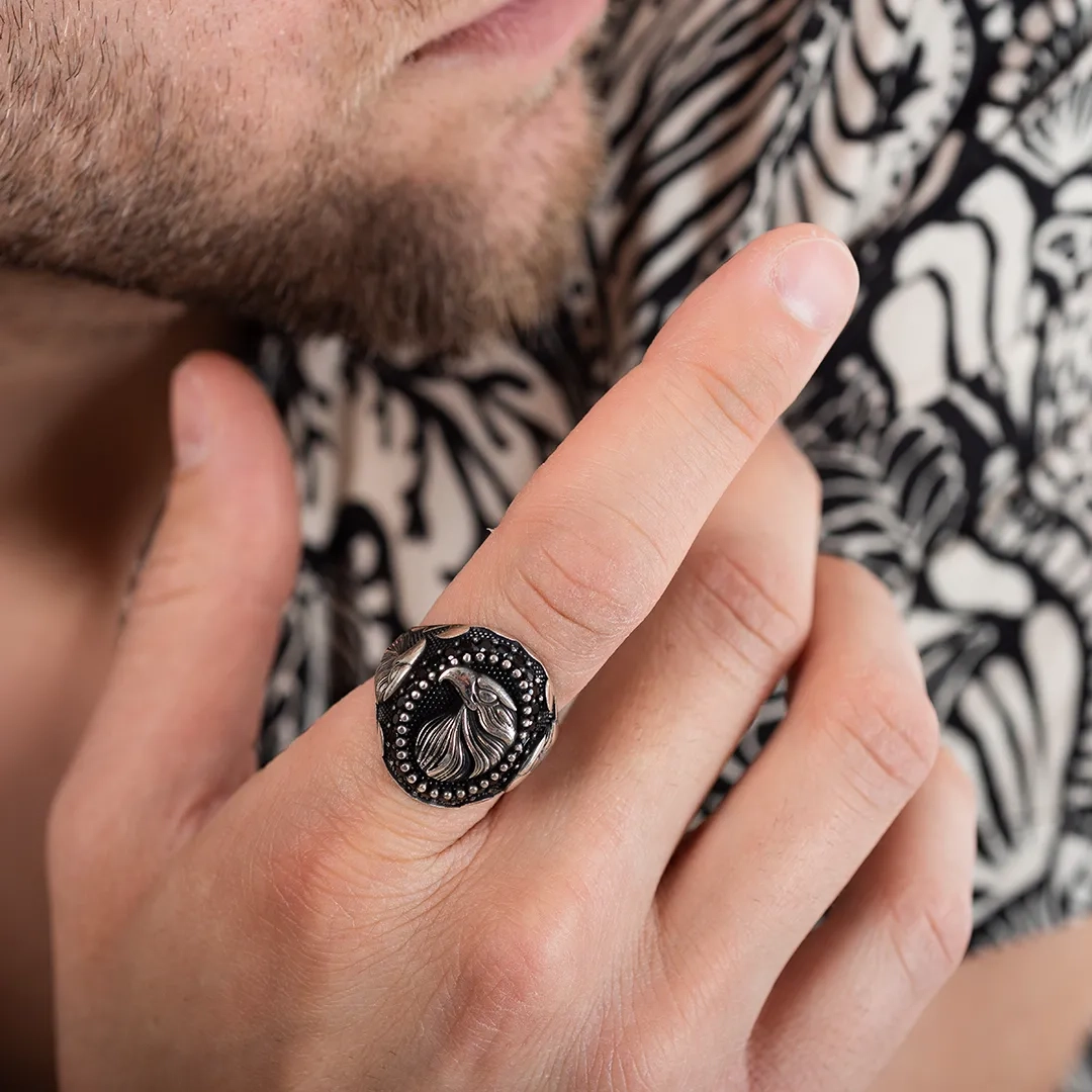 Oxzen ανδρικό δαχτυλίδι ασημένιο, σκαλιστό με αετό