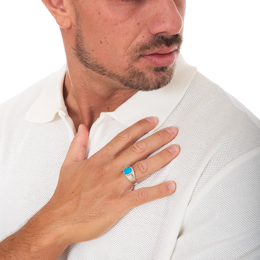 Oxzen ανδρικό δαχτυλίδι ασημένιο τετράγωνο με ορυκτή πέτρα