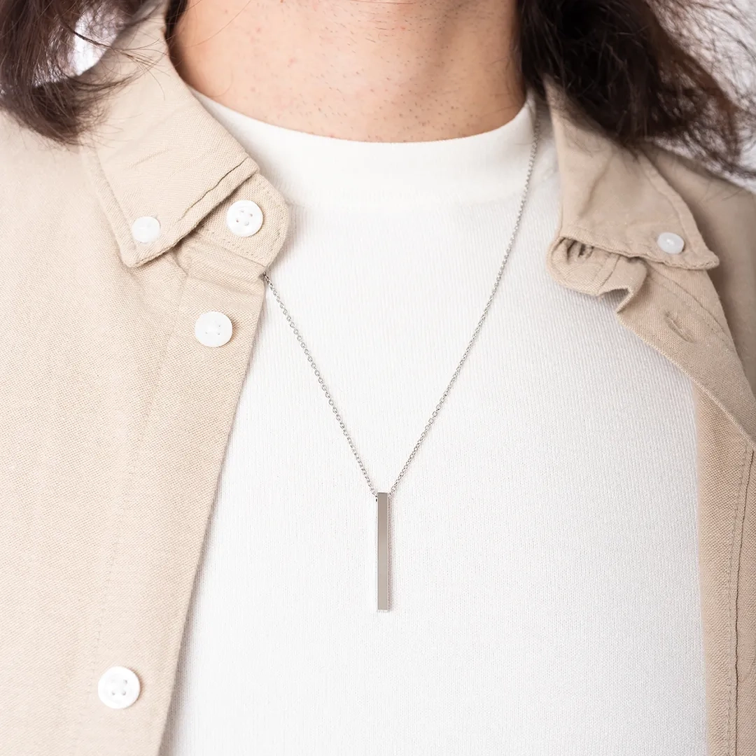 Κολιέ ατσάλι πλακέτα ασημί