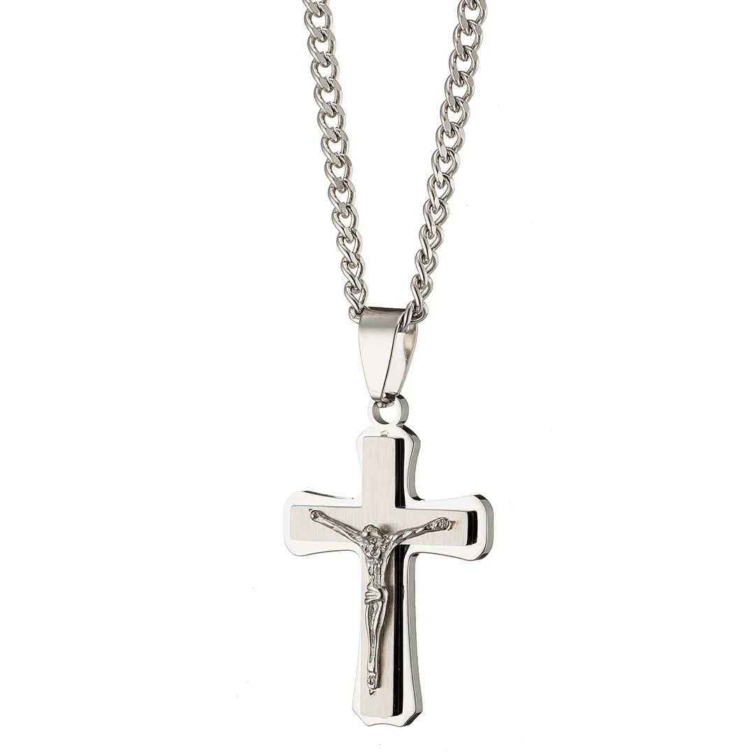 Κολιέ σταυρός αντρικός ατσάλι σε ασημί με μαύρο