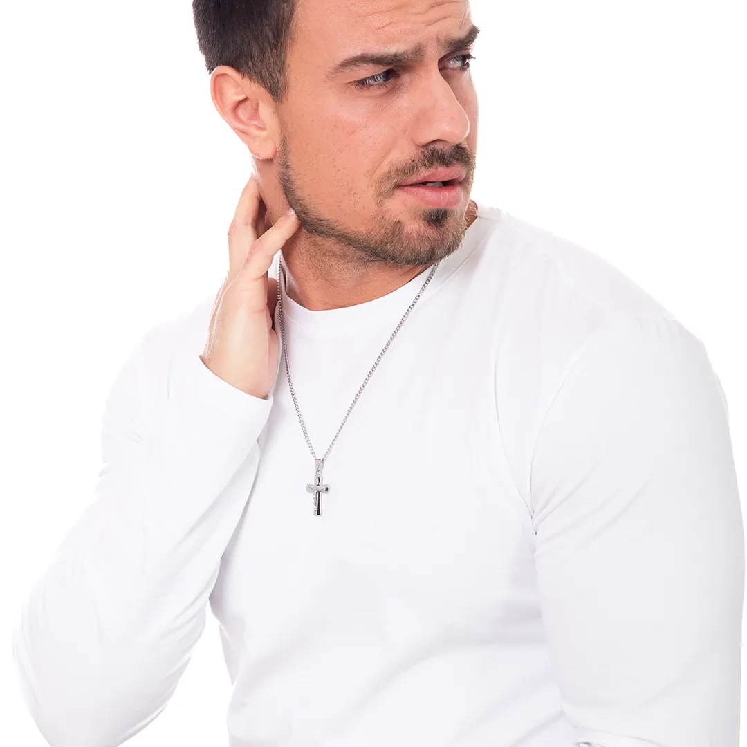 Κολιέ σταυρός με αλυσίδα αντρικός ατσάλι