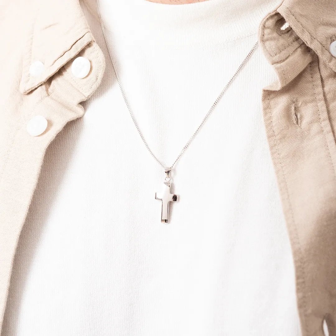Κολιέ σταυρός με αλυσίδα αντρικός ατσάλι