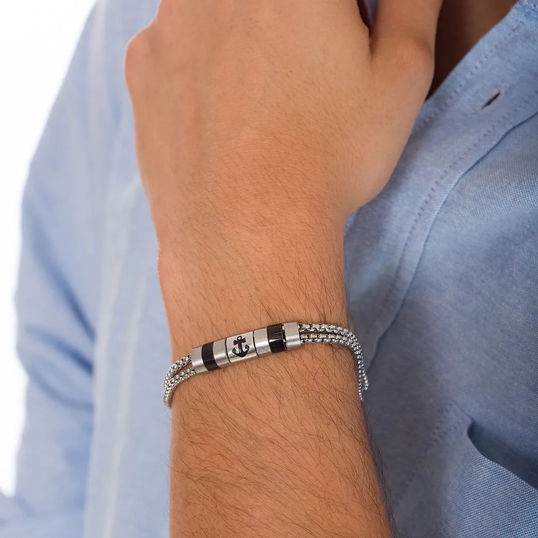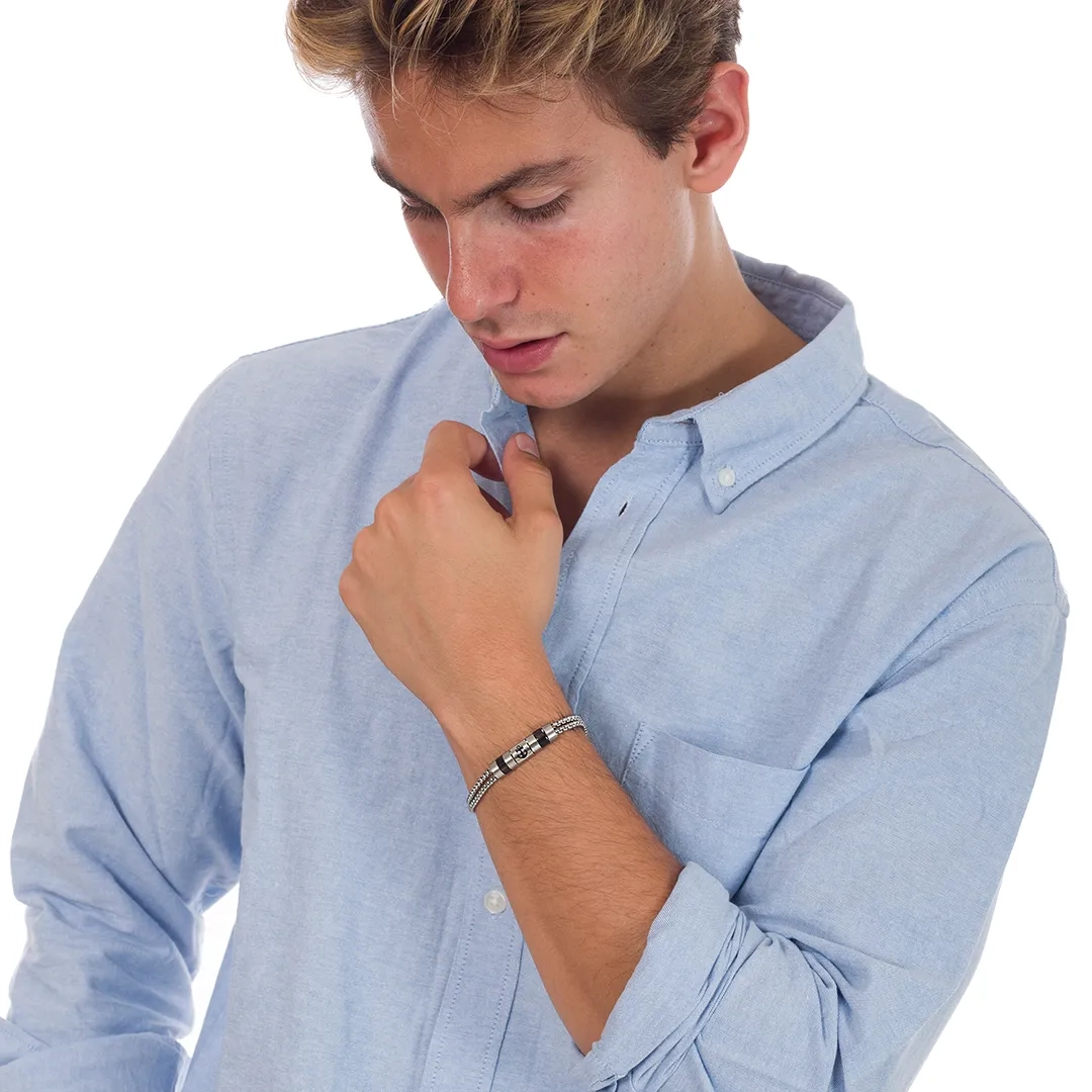 Χειροπέδα ανδρική ατσάλι σε ασημί με μαύρο