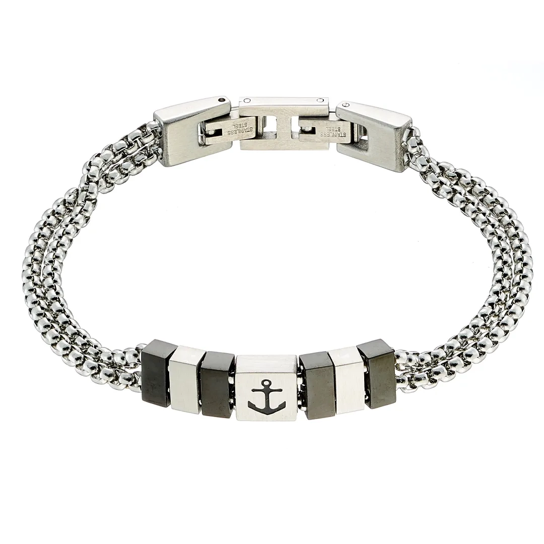 Oxzen ανδρικό βραχιόλι από ανοξείδωτο ατσάλι διπλό με άγκυρα