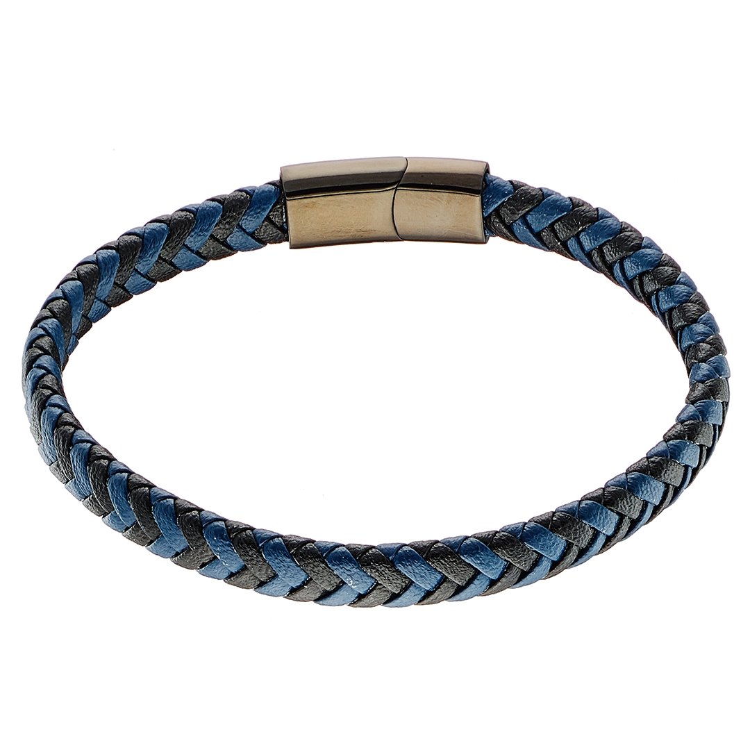 Oxzen ανδρικό βραχιόλι από ανοξείδωτο ατσάλι με δέρμα μπλέ