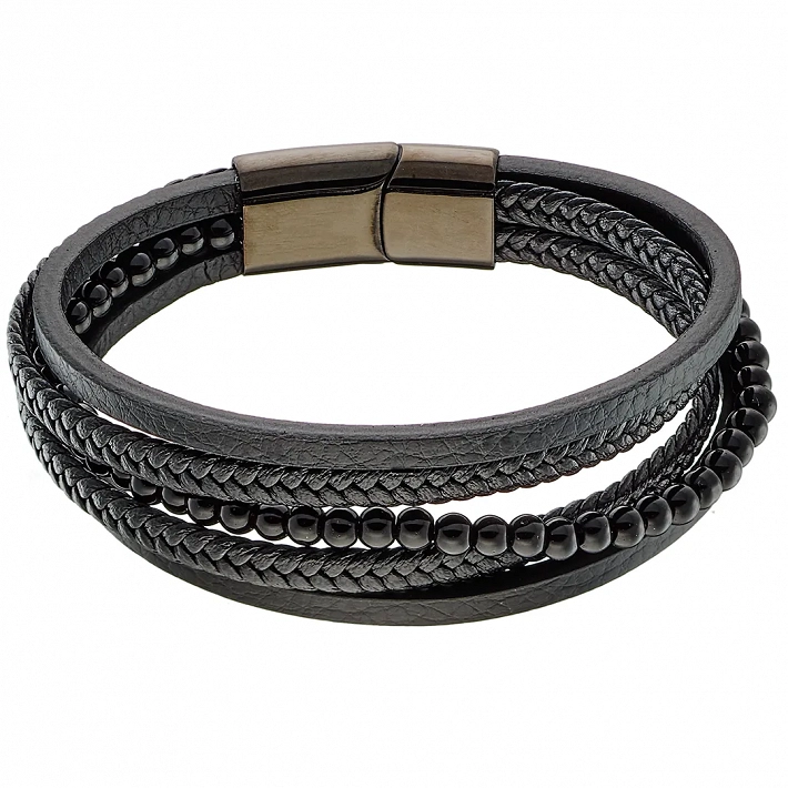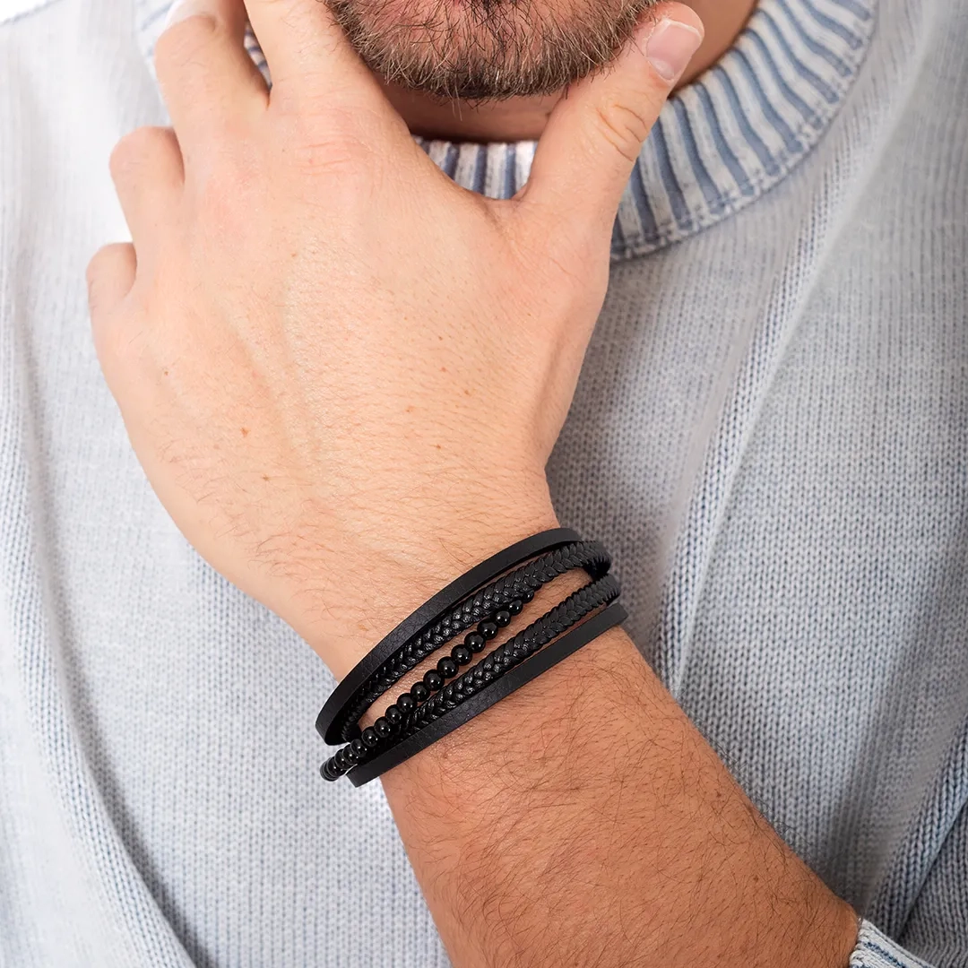 Oxzen ανδρικό βραχιόλι από ανοξείδωτο ατσάλι με μαύρο δέρμα